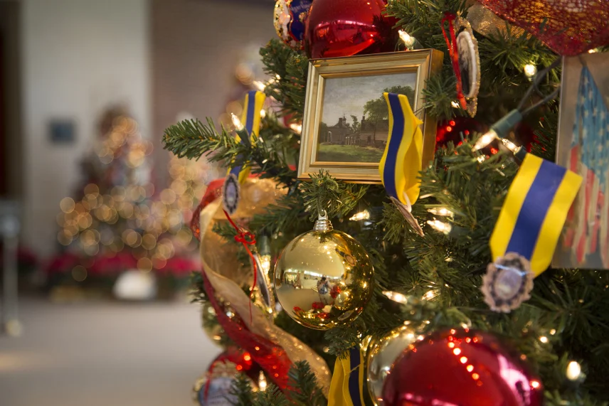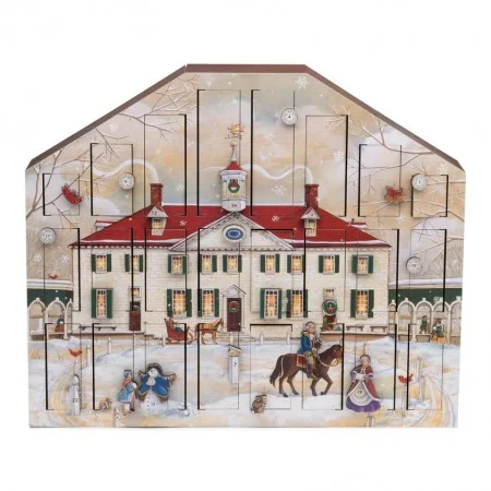 Count down the days until Christmas with this charming advent calendar. The Washington family is shown in front of the snow-covered Mansion, which is decorated with Christmas wreathes. The 24 numbered doors allow room for one or several small surprises to mark each day of Advent until Christmas Day.