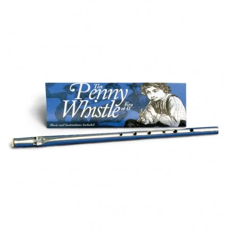 The tin whistle, or penny whistle, is a small, high-pitched flute that has 6 finger holes. Similar to a recorder, it was a popular and inexpensive instrument listed on 18th century store inventories. This 12" tin whistle is in the key of D and is great for novices.