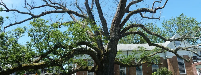 Centuries before English settlers arrived in North America, a white oak tree took root in what is now the Basking Ridge Presbyterian Church in Bernards, New Jersey. This tree would grow to have a trunk circumference of 18 feet and reach 100 feet tall. After years of showing rot, this landmark of natural history was declared dead, forcing crews t...
