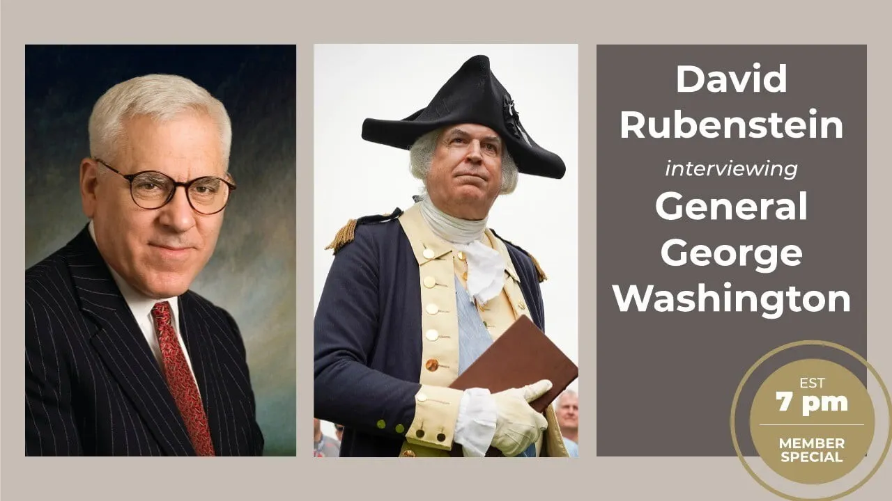 On Wednesday, July 1, join us for a BONUS members-only livestream with Carlyle Group co-founder and co-executive chairman, patriotic philanthropist, and friend of Mount Vernon David Rubenstein, for a unique interview with General George Washington.