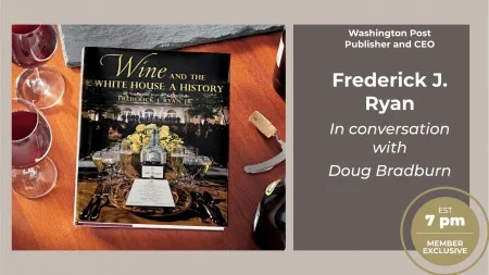The members-only livestream originally scheduled for Monday, Dec. 7 has been postponed and rescheduled for Monday, Dec. 14. Join Washington Post Publisher and CEO Frederick J. Ryan on his new book "Wine and the White House" which illustrates how wine, carefully selected and served, has become much more than a pleasant drink to sip with meals: It plays an important role in White House hospitality, the nation's diplomacy, and America's history