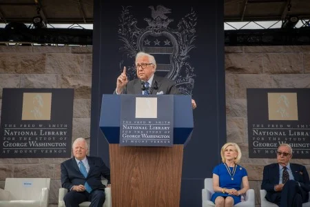 "Today, in this beautiful setting on this magnificent morning, we are opening a library at Mount Vernon. How thrilling. How important. Not just because it is long overdue but because of the influence, the inspiration, the effect, the impact that this gathering place, this center of learning will have on future generations of all people of all kinds from all over the world.”