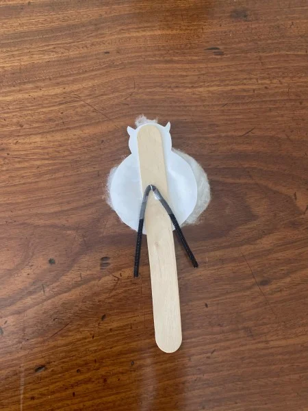 Glue the lamb to the popsicle stick. Make sure your popsicle stick covers the entire back of the lamb.