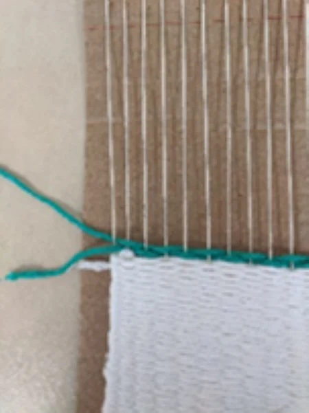 If changing yarn, make sure there is a small tail approximately 2 inches long, so that they can be tucked in later and the weaving doesn’t come apart.