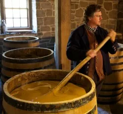 George Washington wasn't only a general and a farmer; he was also a businessman. He began with a gristmill, using the treading barn on his grounds to help separate the wheat. He then took the separated wheat to the mill to be turned into flour. But since George Washington was always interested in learning how to use his land efficiently, he was persuaded to open a distillery as well. Today, we keep his business spirit alive by keeping his gristmill and distillery open and running for both touring and production!