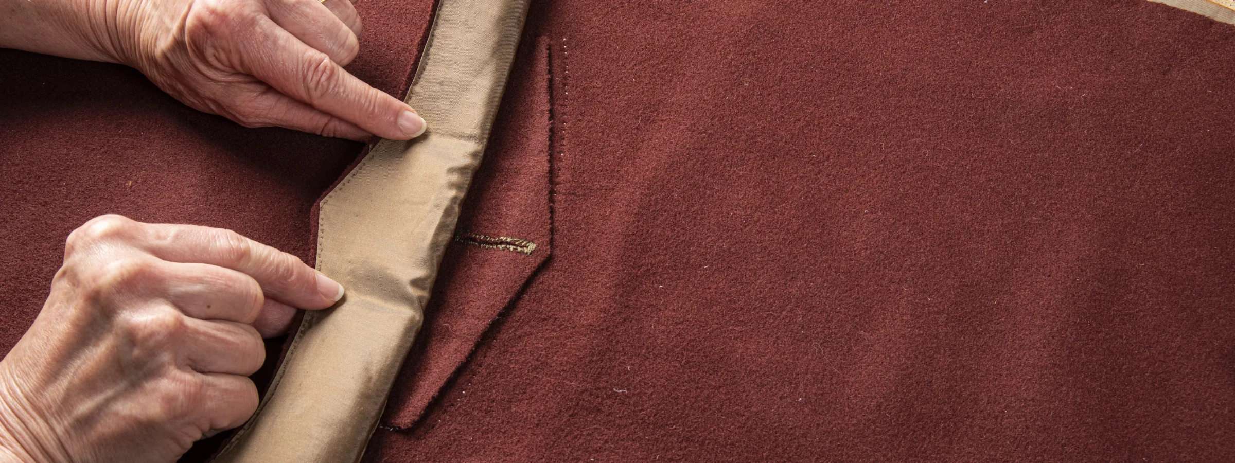 Located in Portland, Oregon, Pendleton Woolen Mills specializes in wool fabric with durability and texture perfect for recreating Washington’s suit. Beyond its aesthetic and practical benefits, Pendleton’s fabric provided Breitt Brown with the flexibility needed to capture the essence of Washington’s original garment. “The hand of Pendleton’s fabric,” Breitt Brown explains, “is exquisite. It’s supple, responsive, and shapes beautifully under an iron.” This quality is crucial in the careful construction of elements like the coat’s collar, which needs just the right fit.