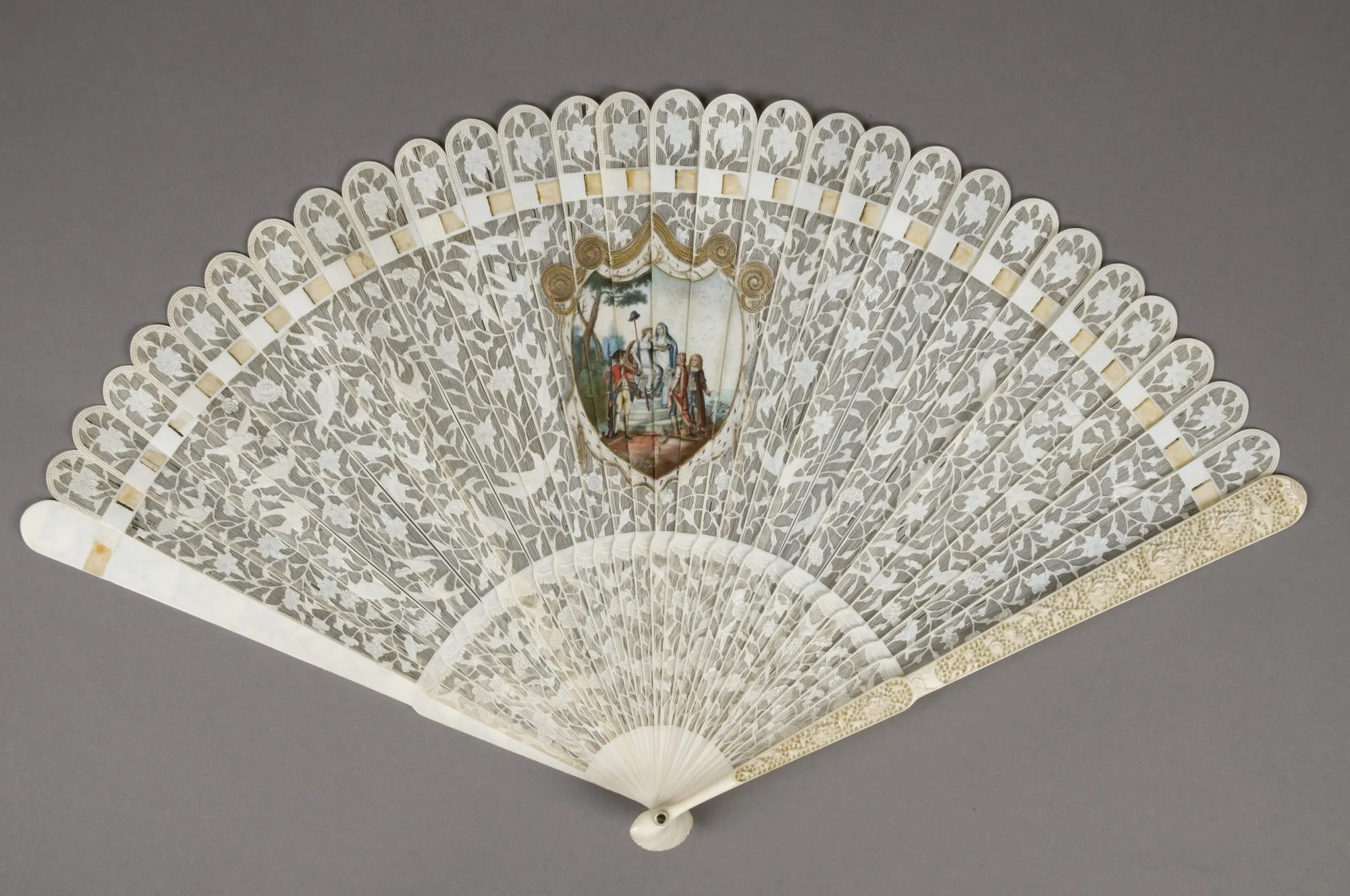Fans were an essential ballroom accessory. Martha Washington is known to have been particularly fond of fans. This example, ca. 1790, was likely acquired during George Washington's presidency. MVLA, Gift of Mrs. Charles A. Conrad, 1894.