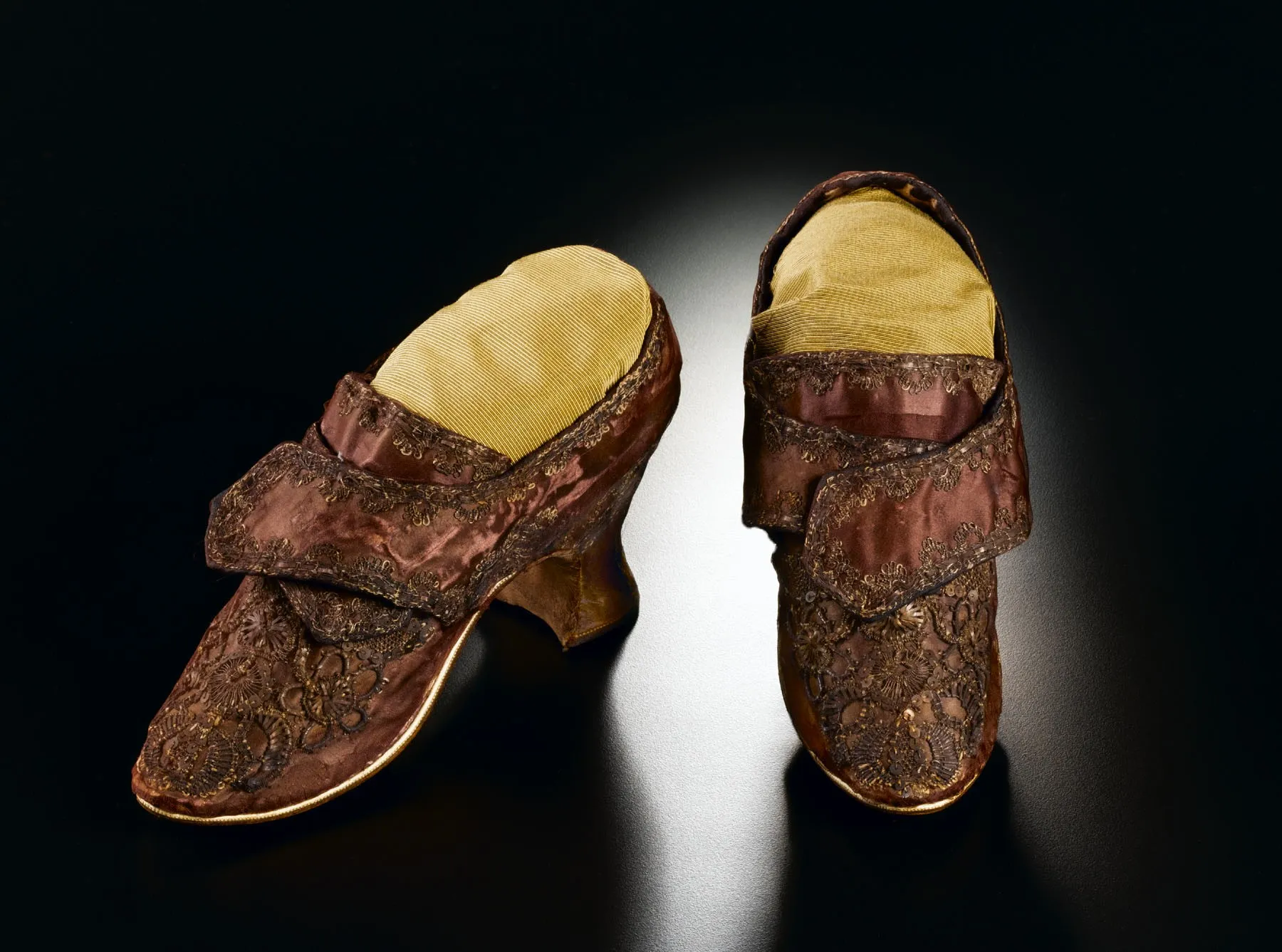 Although somewhat faded today, Martha Washington's wedding slippers were originally a purple satin with silver ornamentation.