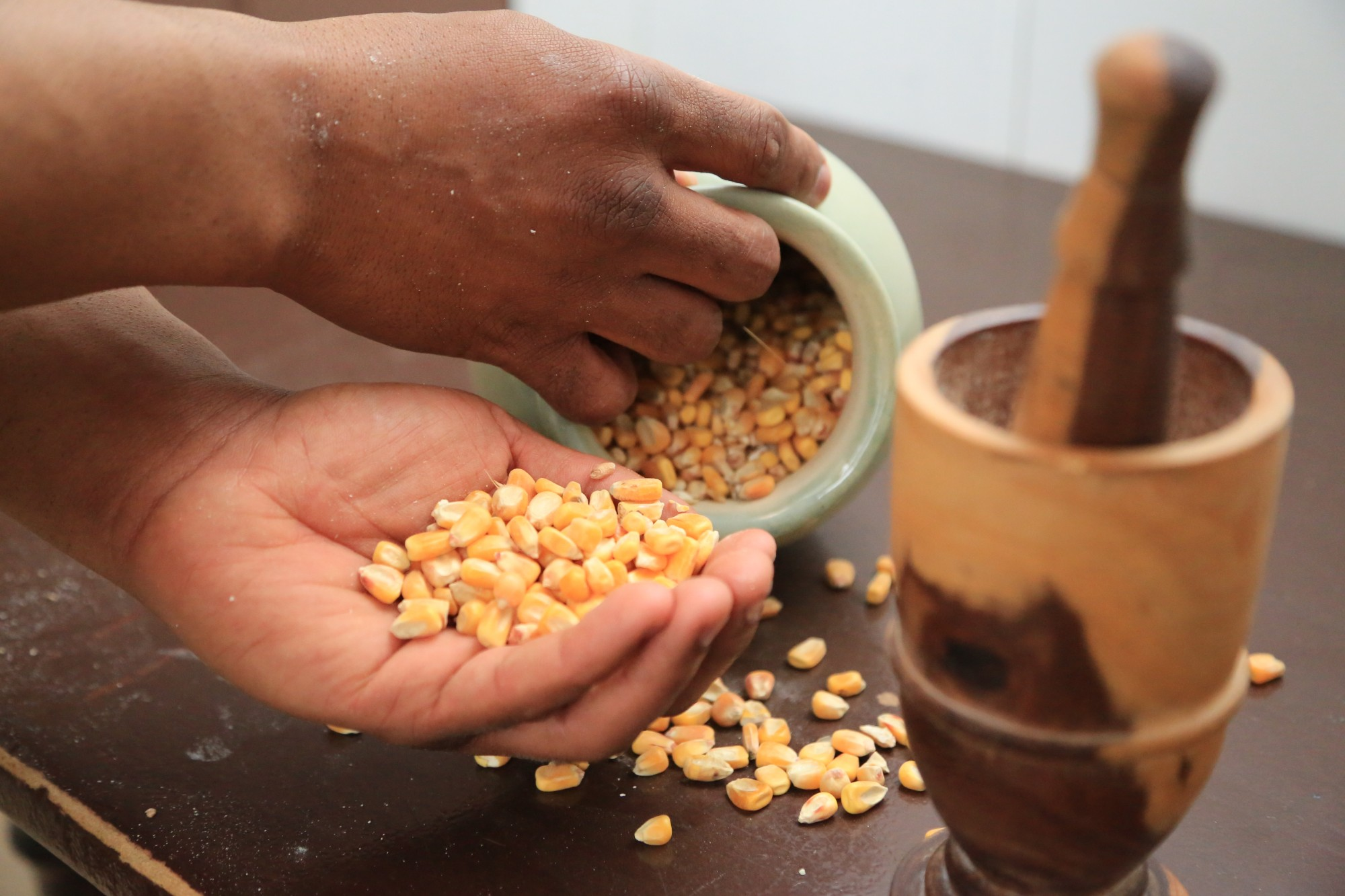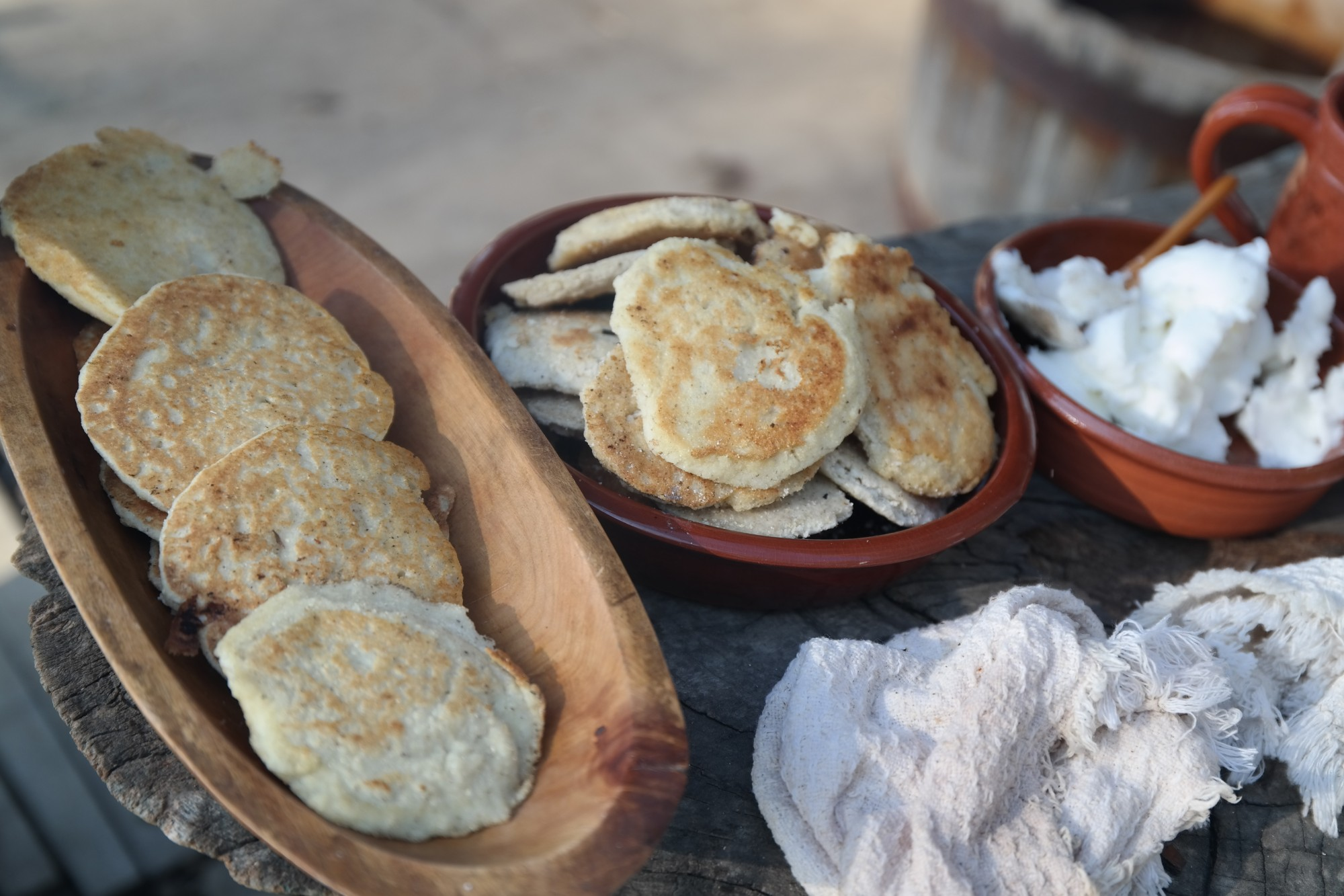 Priscilla and the other field workers pause for 30 minutes to eat breakfast, perhaps a cornmeal pancake.