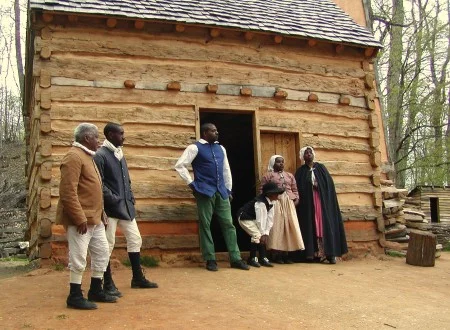This replica cabin represents quarters for a family of eight living on Dogue Run Farm. The people of Mount Vernon’s enslaved community had diverse ethnic and geographic origins. By 1799, only a few enslaved people at Mount Vernon had been born in Africa. Some came from families that had been in America for generations.