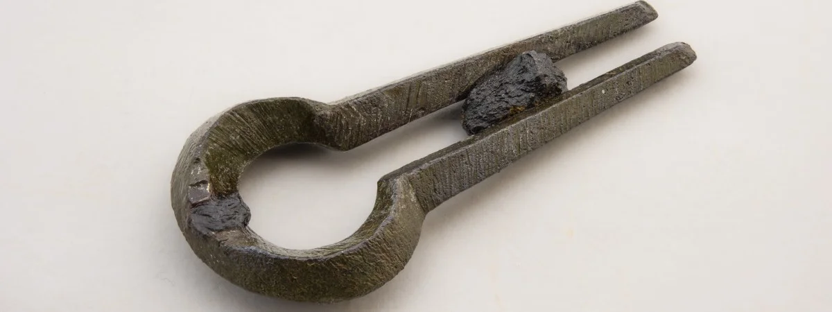 Mount Vernon underwent several campaigns of expansion during Washington’s tenure, necessitating a host of hired and indentured craftsmen and artisans, many of whom were recent immigrants from Ireland and England who lived in residence on the estate. Fragments of two composite metal jaw harps were recovered by Mount Vernon archaeologists in areas associated with skilled laborers—the blacksmith shop north of the Mansion and in the work yards along the lane south of the Mansion. Cheap, portable, and readily available, jaw harps attained a wide following throughout the colonial era. Hired artisans often worked in tandem with skilled enslaved craftsmen, and both groups made frequent use of these respective work spaces. The sprightly twang of the jaw harp could have enlivened an impromptu tune that conjured memories of a home left behind or may have provided an informal rhythmic accompaniment from which to mark the passage of the day’s labors.