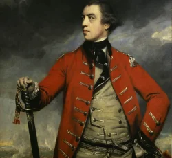 John Burgoyne served as a general in the British Army during the American Revolution. Burgoyne commanded a force of 8,500 men during the 1777 campaign season in an attack on the Lake Champlain-Hudson River Vally from Canada. Burgoyne’s defeat at the Battle of Saratoga in October 1777 led to the formal alliance between France and the United States in February 1778.
