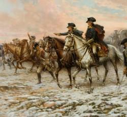 With the Continental Army threatening to dissolve around him, General George Washington led the remnants of his army across the icy Delaware River on Christmas night 1776 and routed a Hessian garrison at Trenton.