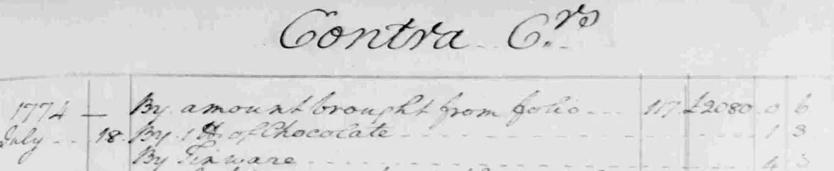 This 1774 invoice contains Washington's order for chocolate. (MVLA)