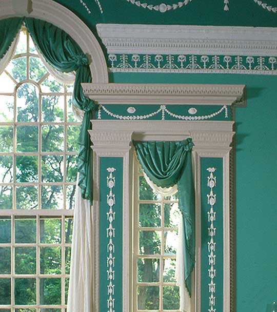 Washington incorporated elements from a number of English pattern books in his designs for both the Mansion’s interior and exterior. Two books by Batty Langley, The City and Country Builder and Workman's Treasury of Designs (1750), and The Builder's Jewel (1757), were particularly influential.