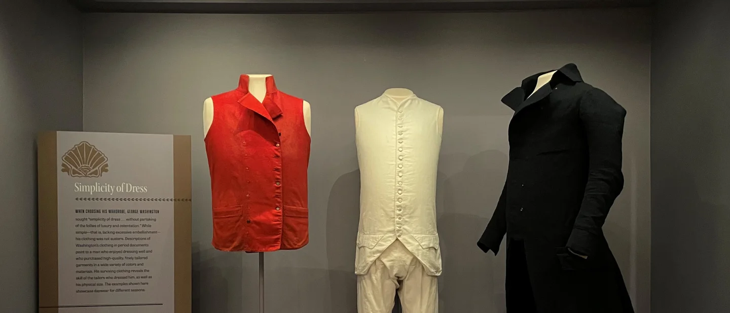 During the semiquincentennial of the United States, take the rare opportunity to view three garments that George Washington wore and that embody his philosophy on dress.