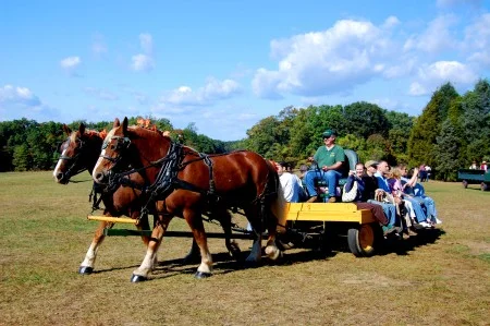 Enjoy a scenic ride across the 12-acre field in a horse-drawn wagon.