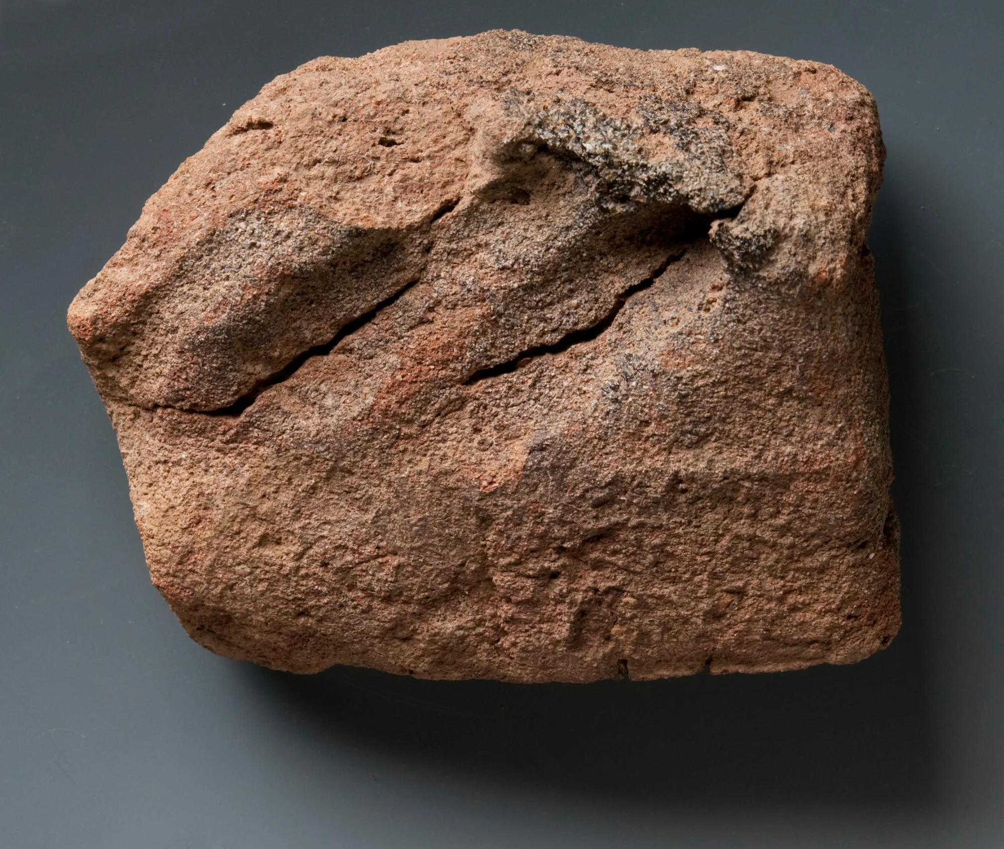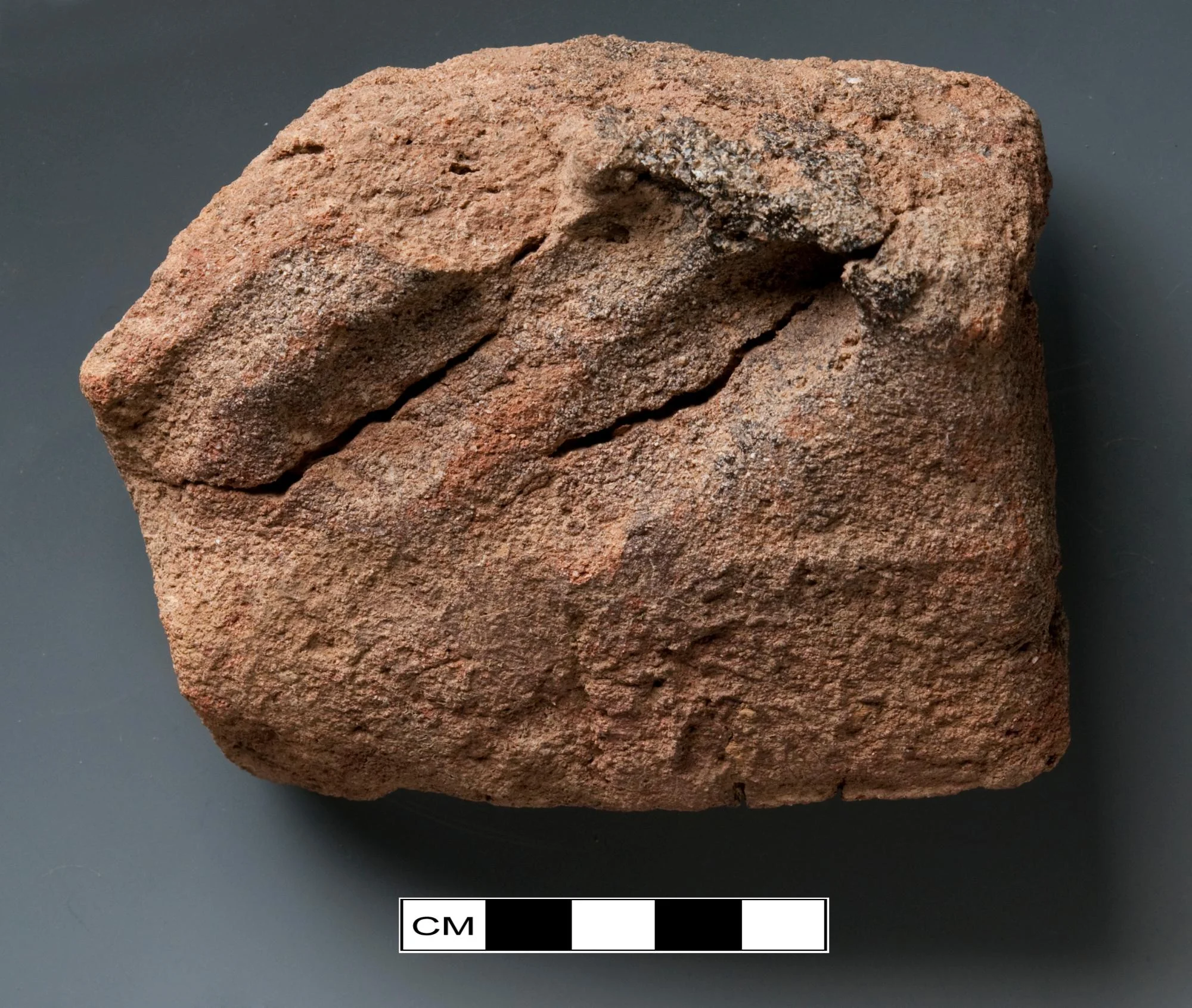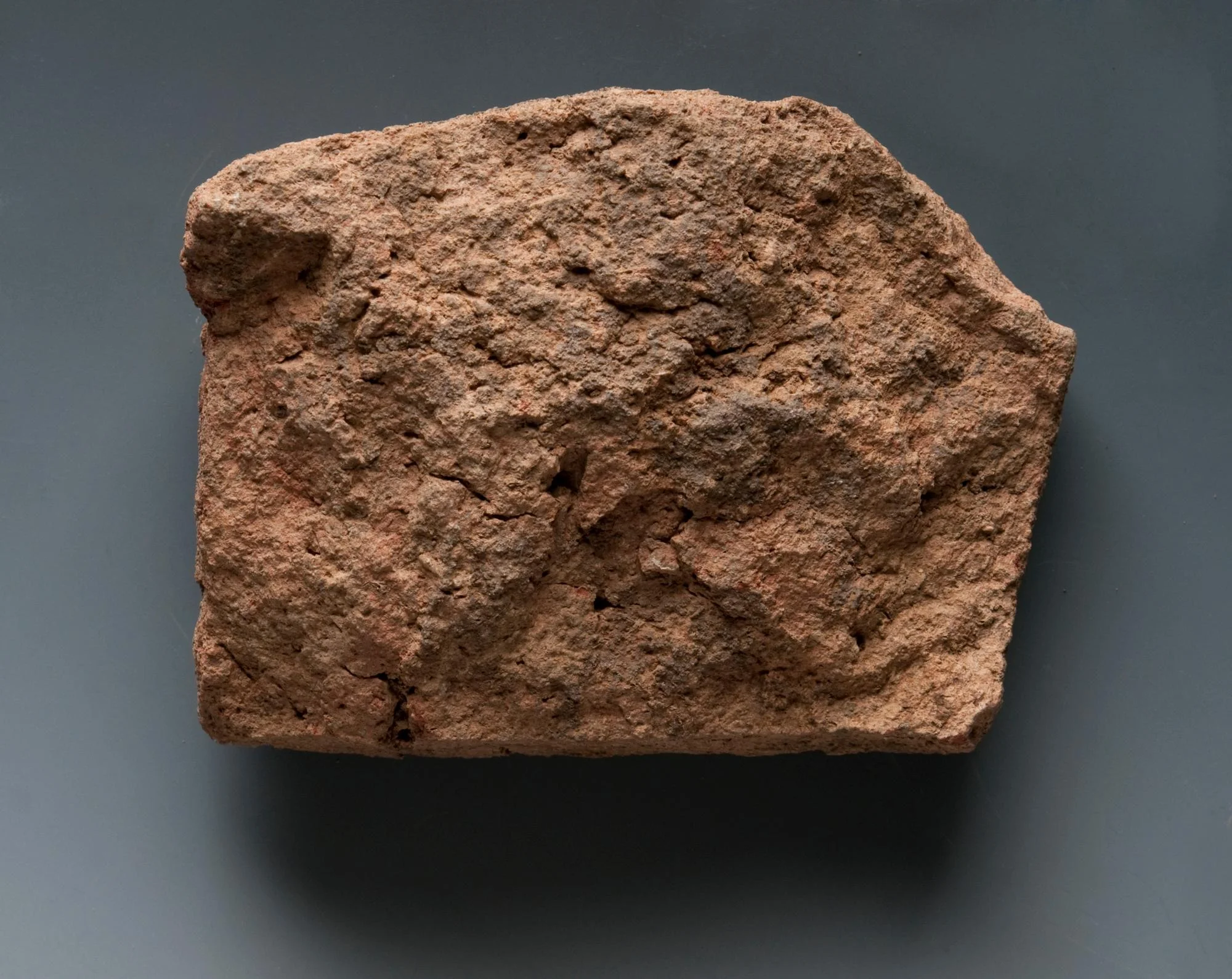 Index and middle finger impressions visible on short side of brick.