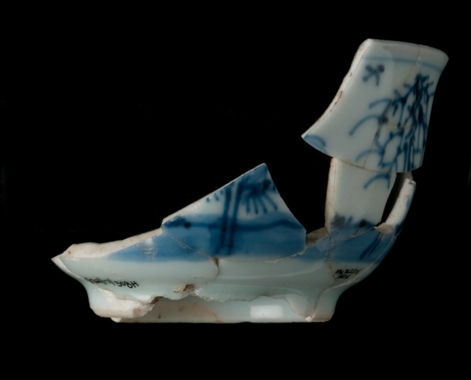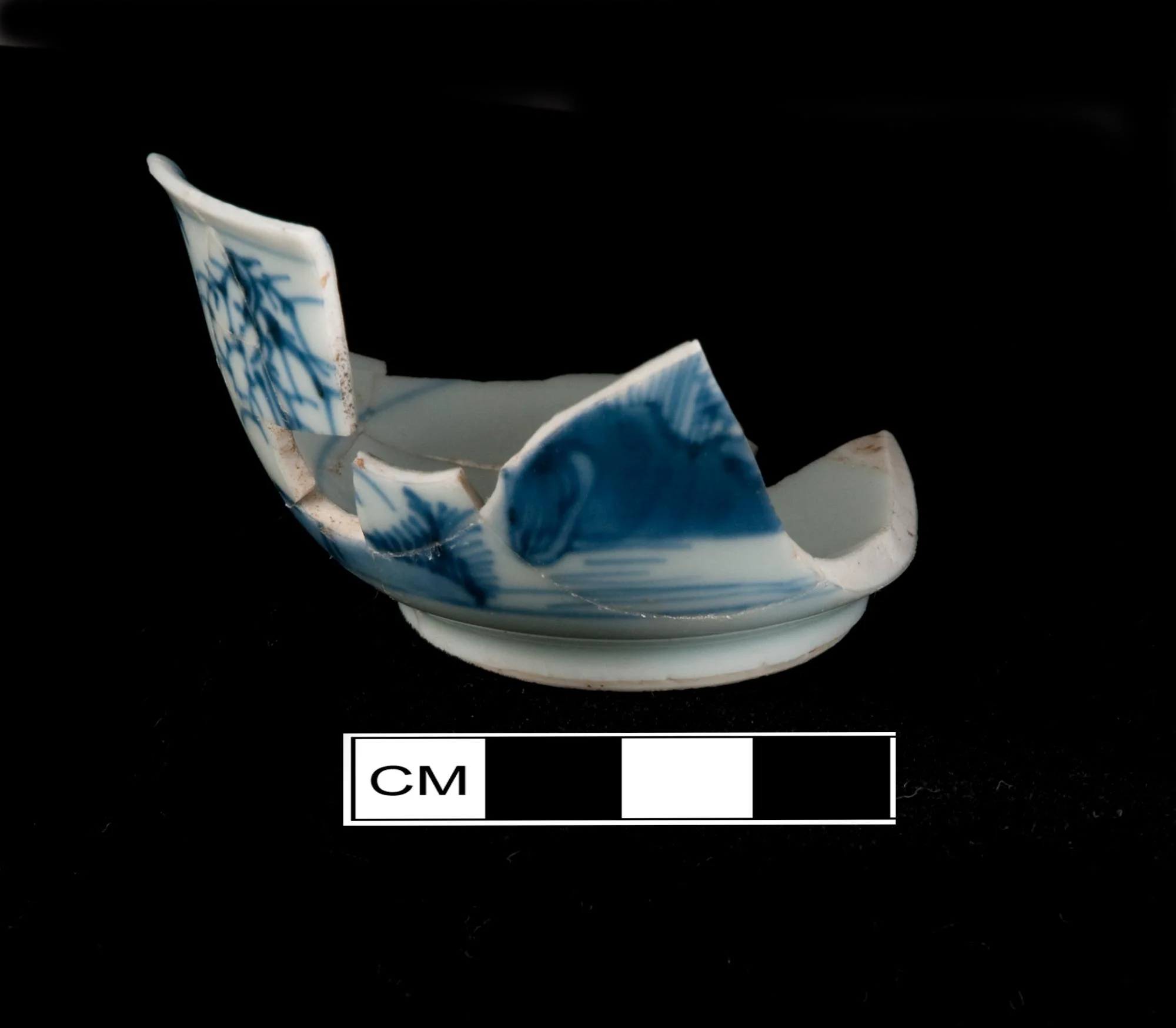 An extensive sheet midden was partially revealed and tested in 1990, with two much larger portions exposed in 1991 and 1992. The midden was at least 30 feet in diameter and in excess of 1.5 feet in depth at its center. Excavations yielded enormous quantities of faunal remains, ceramics, wine bottle glass—including three different bottle seals—table glass, tobacco pipes, and a wide range of personal and household objects. Based on the materials recovered to date, the midden appears to have been deposited just prior to the American Revolution.