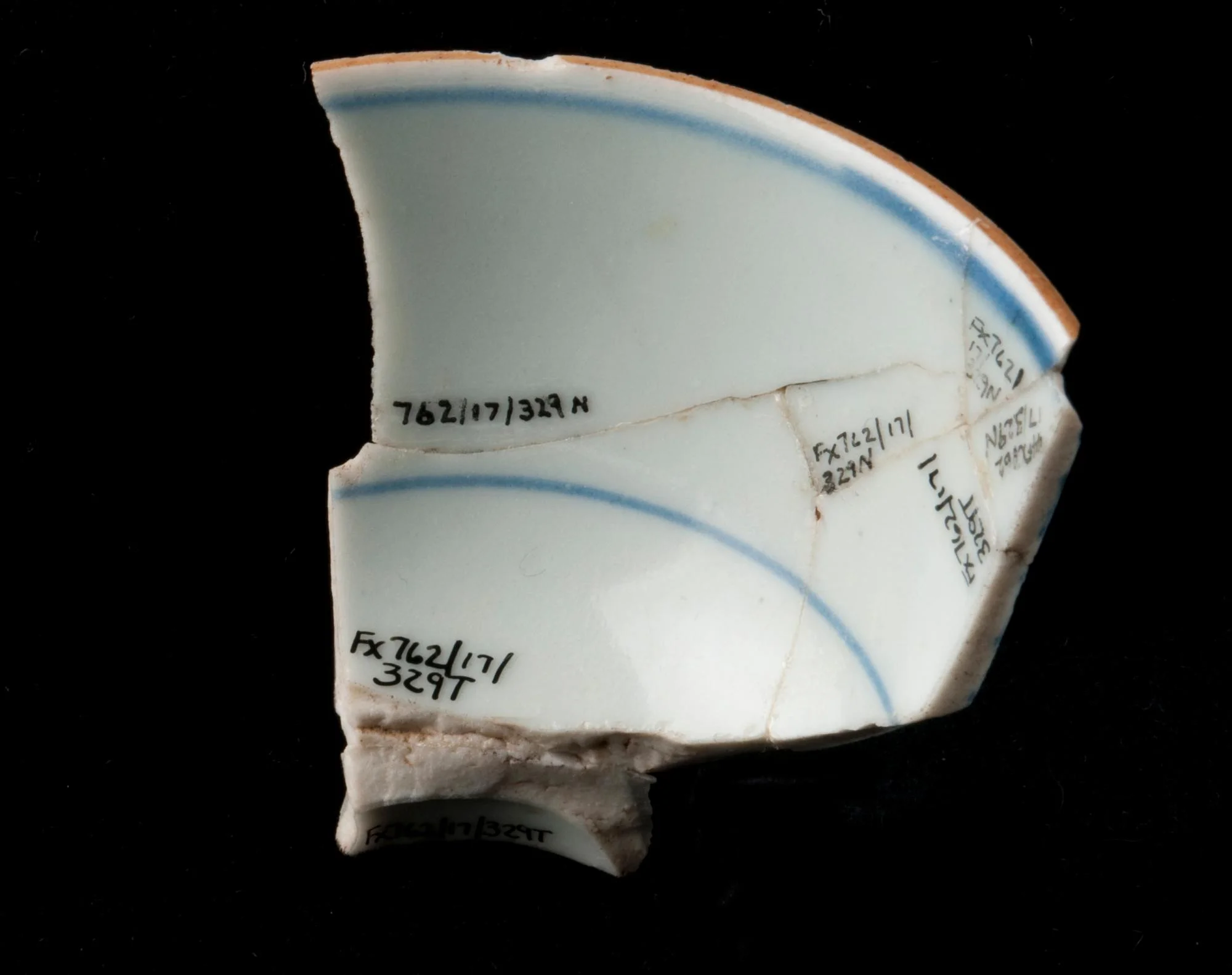 An extensive sheet midden was partially revealed and tested in 1990, with two much larger portions exposed in 1991 and 1992. The midden was at least 30 feet in diameter and in excess of 1.5 feet in depth at its center. Excavations yielded enormous quantities of faunal remains, ceramics, wine bottle glass—including three different bottle seals—table glass, tobacco pipes, and a wide range of personal and household objects. Based on the materials recovered to date, the midden appears to have been deposited just prior to the American Revolution.