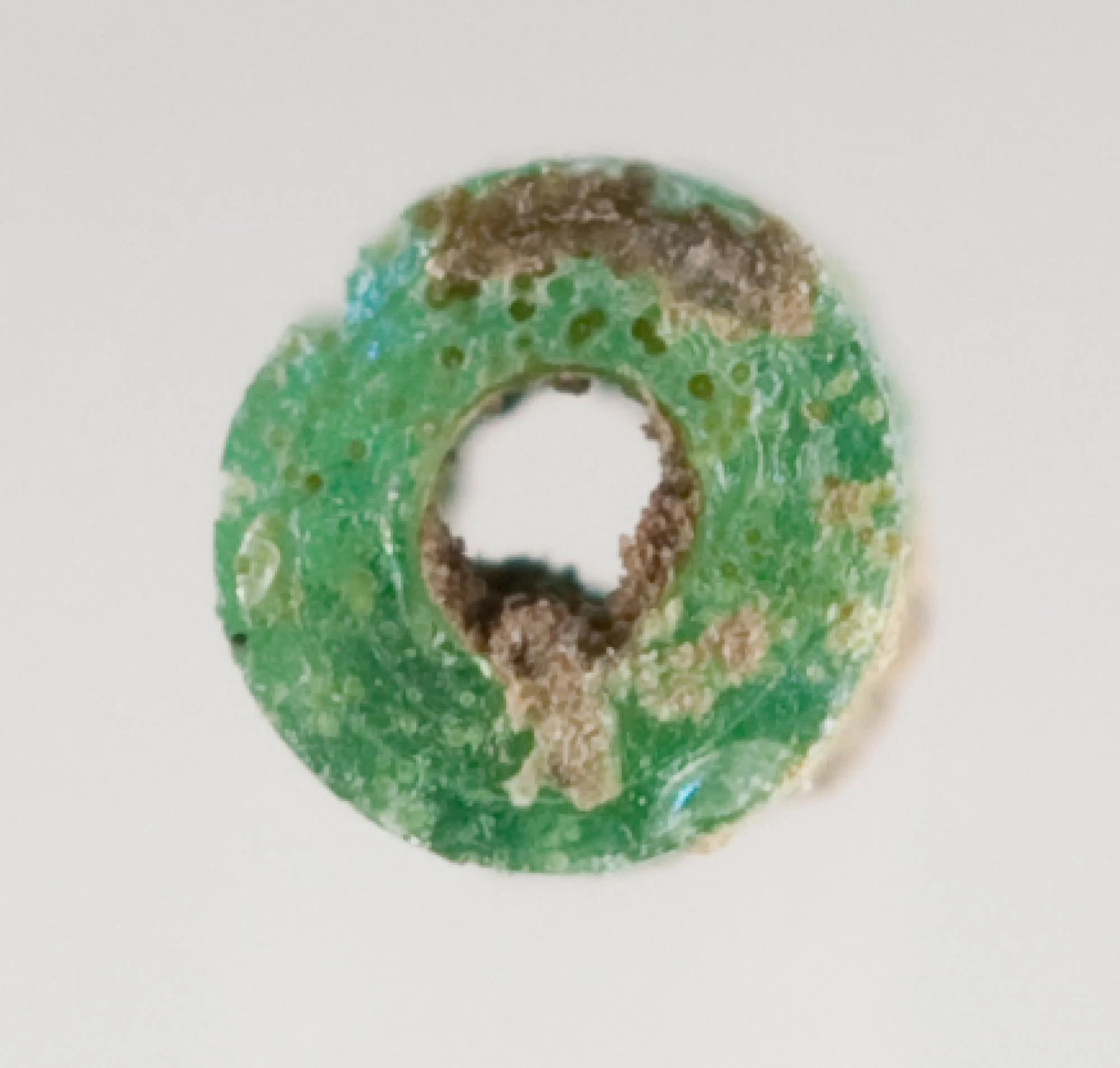 An extensive sheet midden was partially revealed and tested in 1990, with two much larger portions exposed in 1991 and 1992. The midden was at least 30 feet in diameter and in excess of 1.5 feet in depth at its center. Excavations yielded enormous quantities of faunal remains, ceramics, wine bottle glass—including three different bottle seals—table glass, tobacco pipes, and a wide range of personal and household objects. Based on the materials recovered to date, the midden appears to have been deposited just prior to the American Revolution.