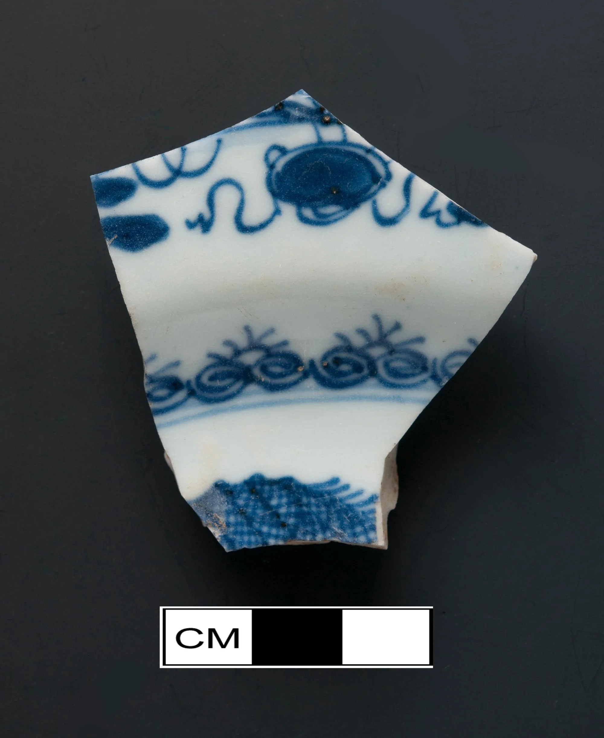 An extensive sheet midden was partially revealed and tested in 1990, with two much larger portions exposed in 1991 and 1992. The midden was at least 30 feet in diameter and in excess of 1.5 feet in depth at its center. Excavations yielded enormous quantities of faunal remains, ceramics, wine bottle glass—including three different bottle seals—table glass, tobacco pipes, and a wide range of personal and household objects. Based on the materials recovered to date, the midden appears to have been deposited just prior to the American Revolution.