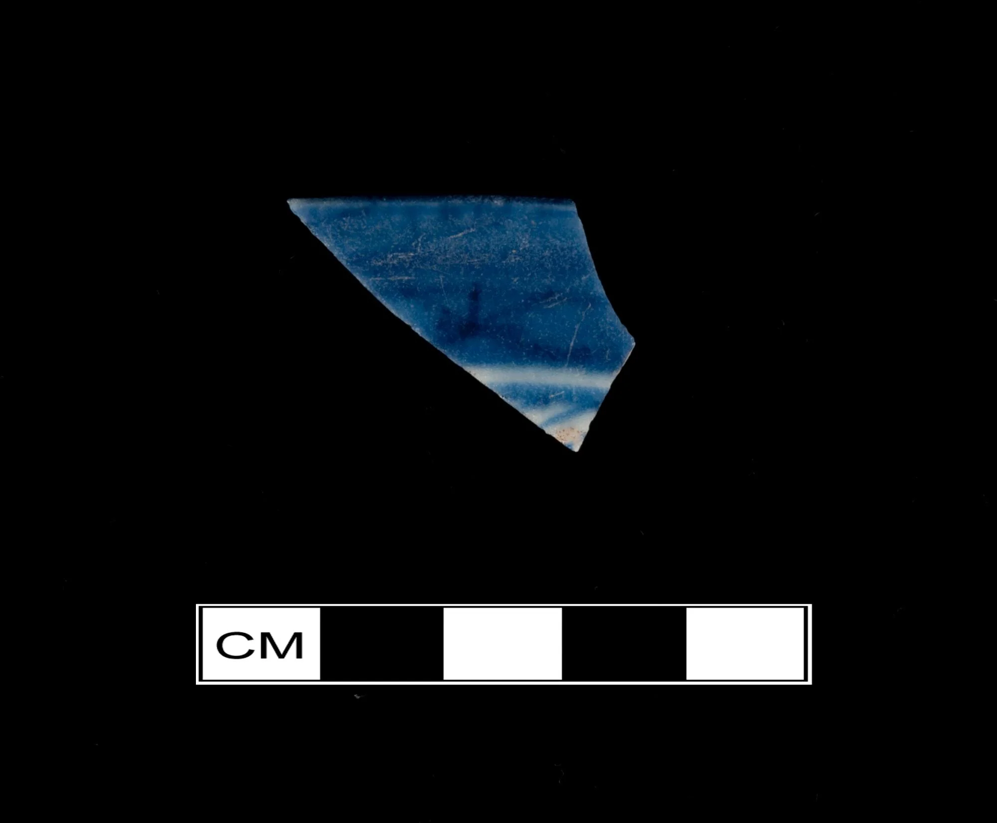 After the American Revolution, Canton wares became quite affordable and were readily available. Canton represented the lesser of the two types of blue and white porcelains available in the last quarter of the eighteenth century; the other was Nanking/Fitzhugh, which generally had finer decorative painting. Therefore, the table service that this sherd represents was probably utilized for everyday dining. Such wares may have been present on the late eighteenth century table of George and Martha Washington, or possibly even on those of the succeeding family inheritors of the estate in the nineteenth century.