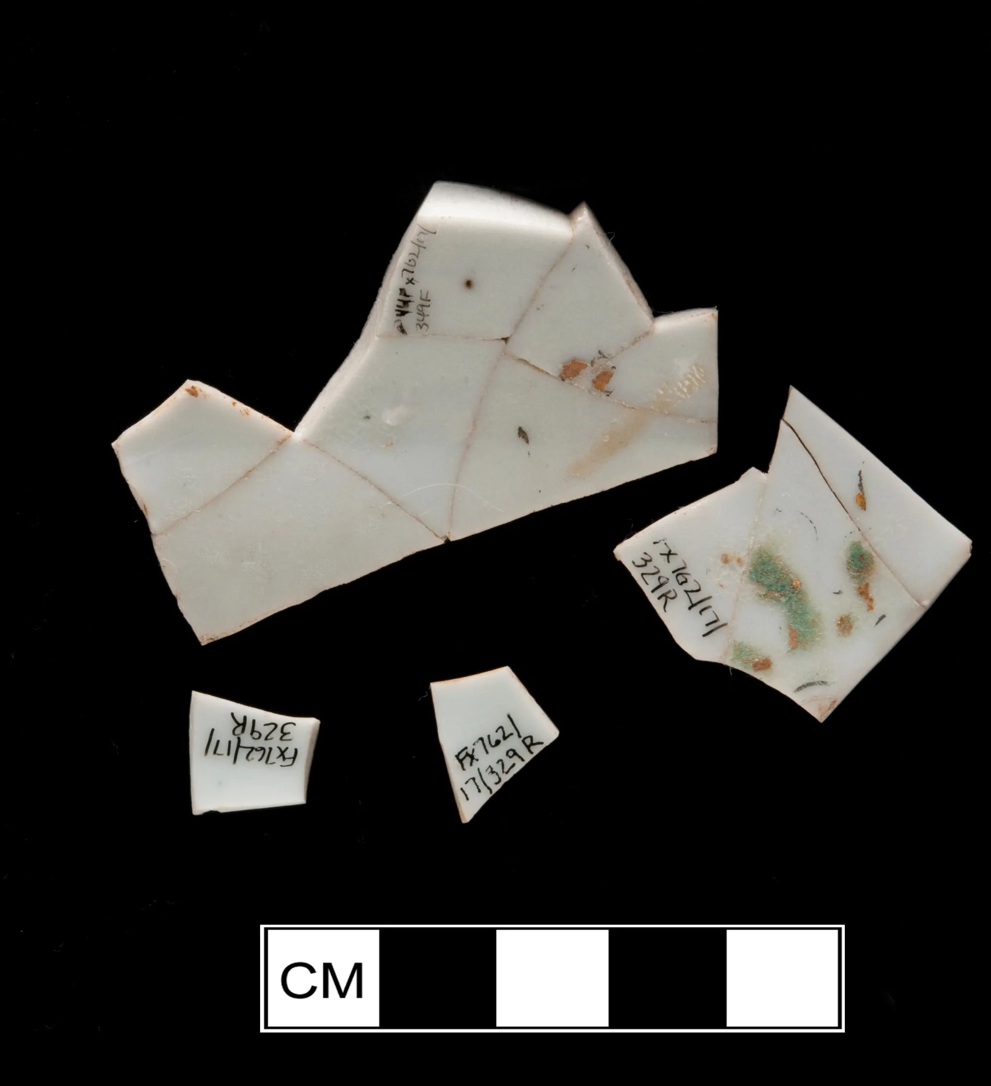 An extensive sheet midden was partially revealed and tested in 1990, with two much larger portions exposed in 1991 and 1992. The midden was at least 30 feet in diameter and in excess of 1.5 feet in depth at its center. Excavations yielded enormous quantities of faunal remains, ceramics, wine bottle glass—including three different bottle seals—table glass, tobacco pipes, and a wide range of personal and household objects. Based on the materials recovered to date, the midden appears to have been deposited just prior to the American Revolution.