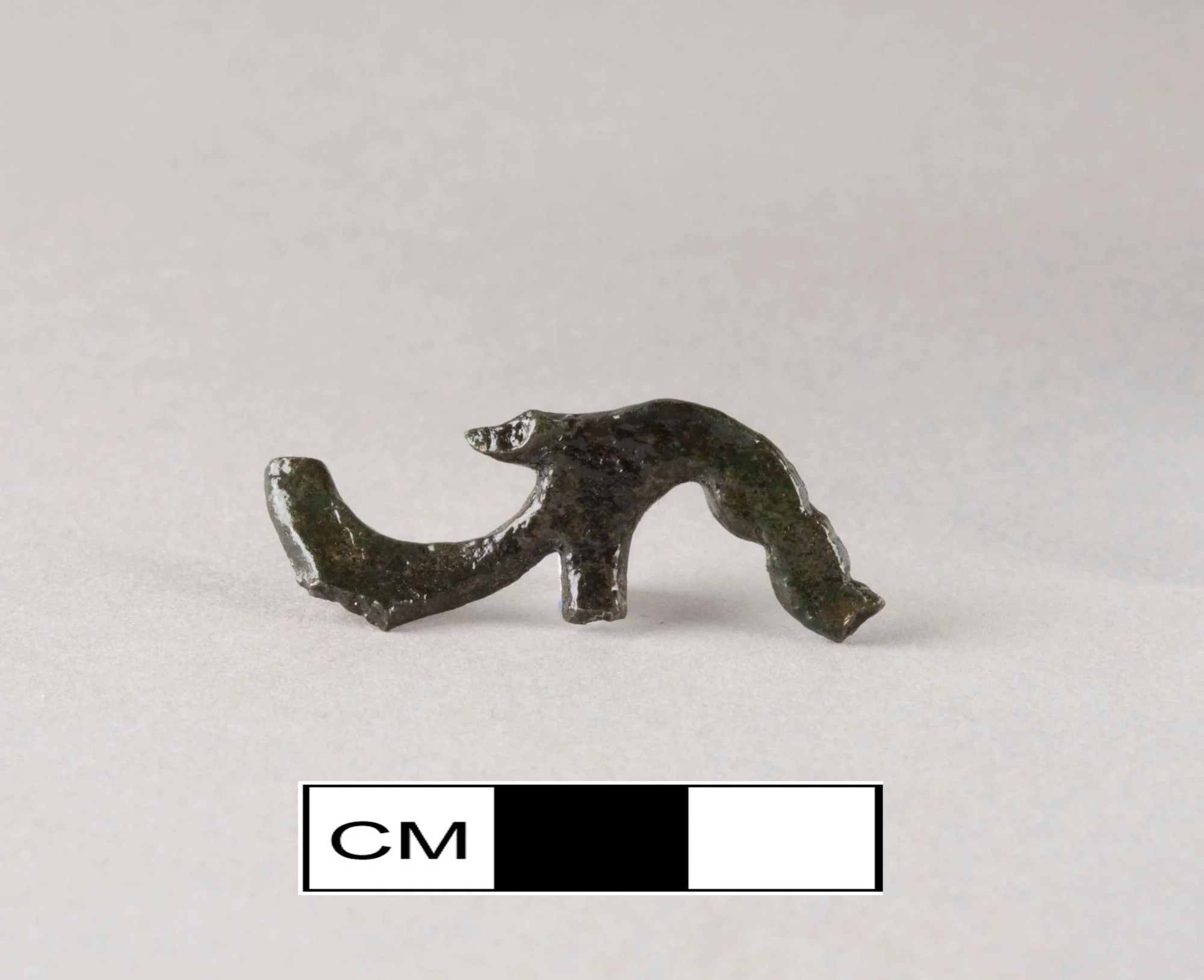Bent. Edges broken in five places. Possibly associated with guns or furniture.