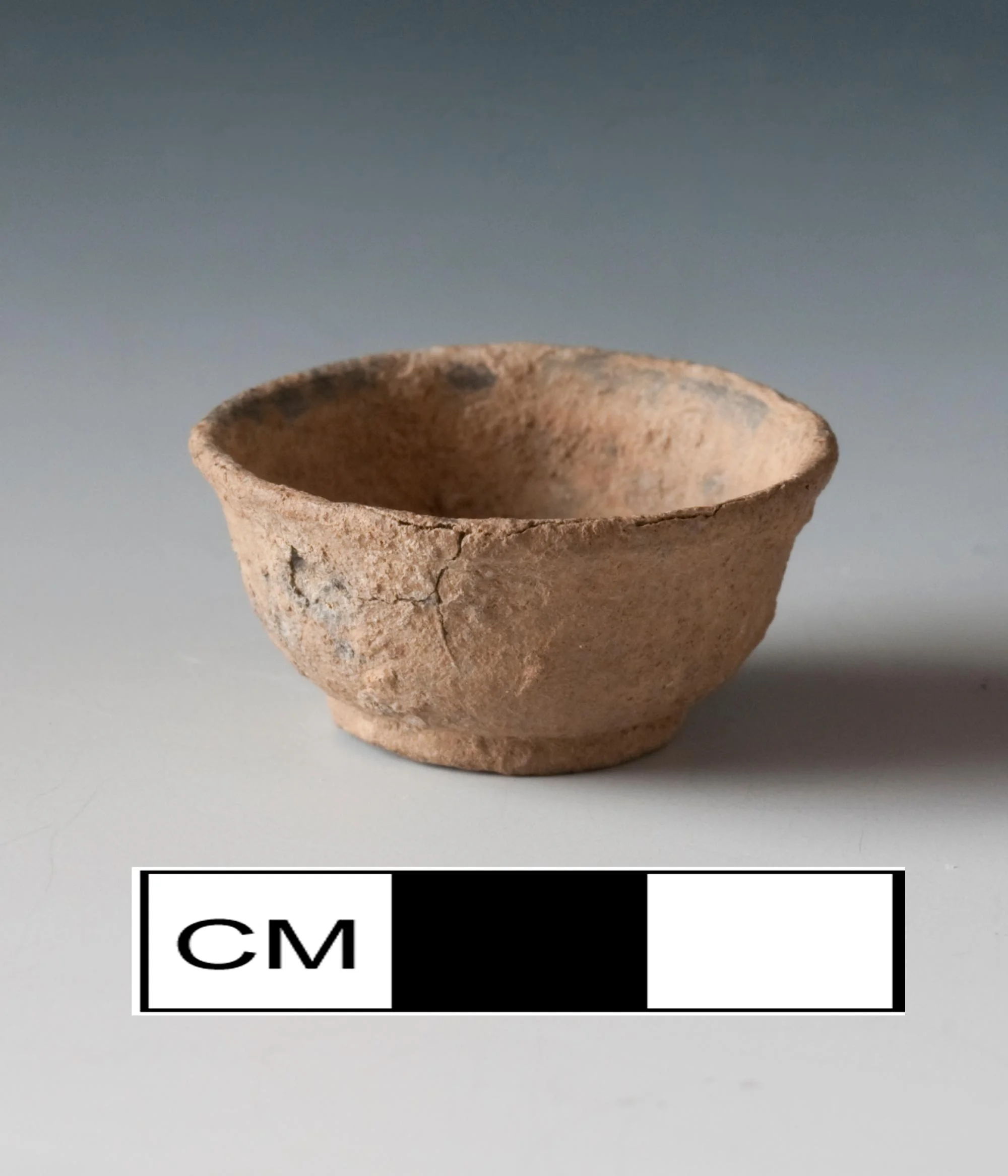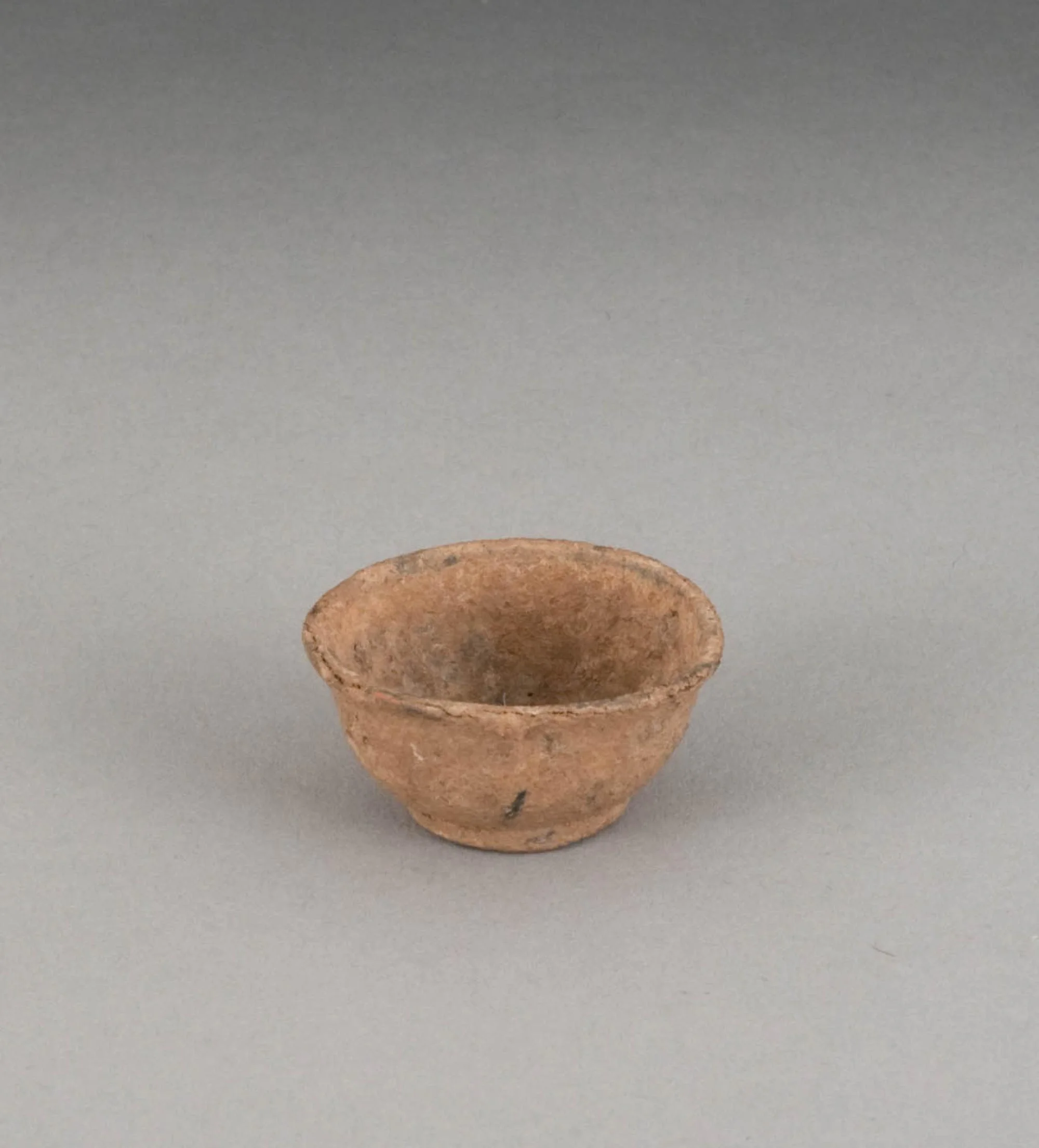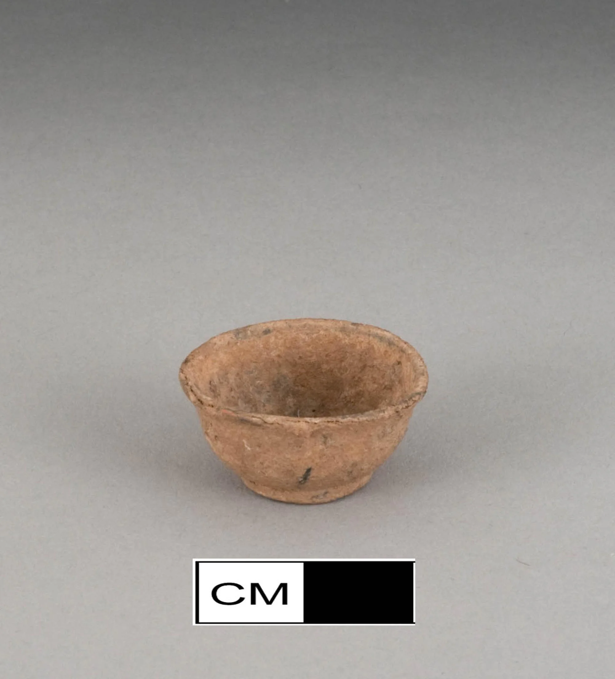 Rim diameter: 25.31mm. Base diameter: 14.49mm. Vessel has a footring. Flared rim.