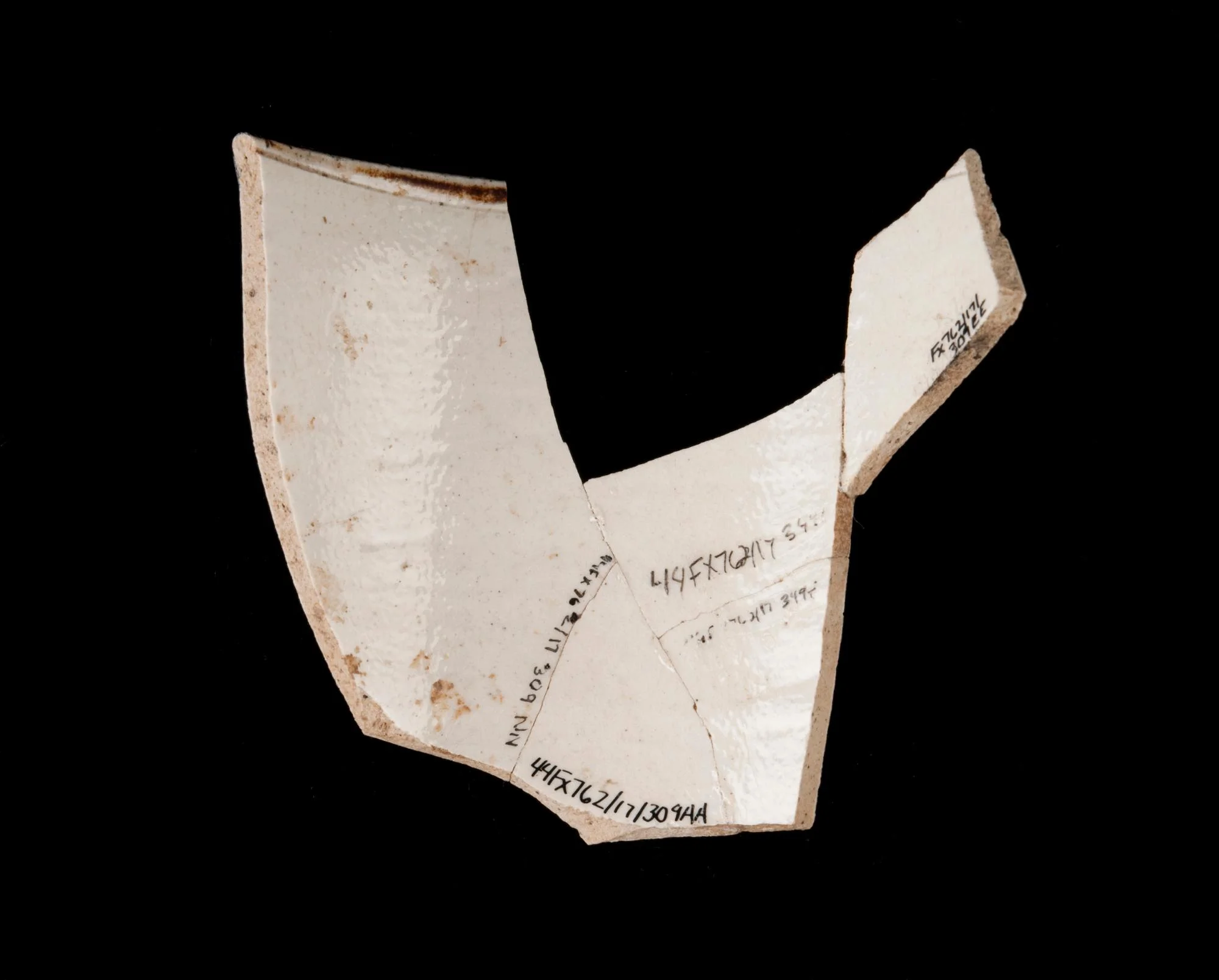 An extensive sheet midden was partially revealed and tested in 1990, with two much larger portions exposed in 1991 and 1992. The midden was at least 30 feet in diameter and in excess of 1.5 feet in depth at its center. Excavations yielded enormous quantities of faunal remains, ceramics, wine bottle glass—including three different bottle seals—table glass, tobacco pipes, and a wide range of personal and household objects. Based on the materials recovered to date, the midden appears to have been deposited just prior to the American Revolution.