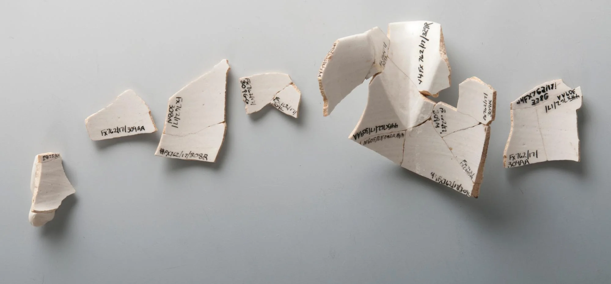 An extensive sheet midden was partially revealed and tested in 1990, with two much larger portions exposed in 1991 and 1992. The midden was at least 30 feet in diameter and in excess of 1.5 feet in depth at its center. Excavations yielded enormous quantities of faunal remains, ceramics, wine bottle glass—including three different bottle seals—table glass, tobacco pipes, and a wide range of personal and household objects. Based on the materials recovered to date, the midden appears to have been deposited just prior to the American Revolution.