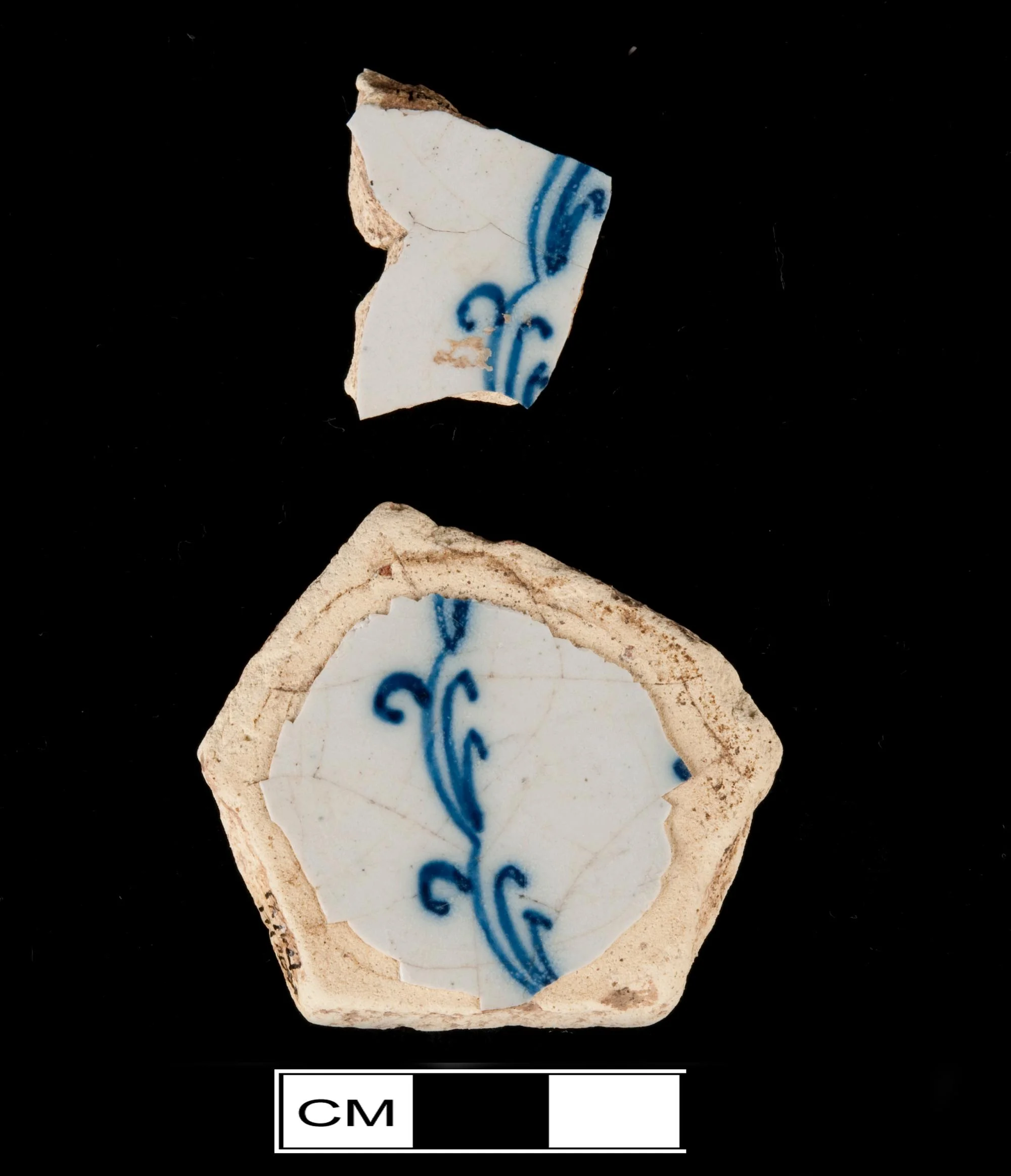 An extensive sheet midden was partially revealed and tested in 1990, with two much larger portions exposed in 1991 and 1992. The midden was at least 30 feet in diameter and in excess of 1.5 feet in depth at its center. Excavations yielded enormous quantities of faunal remains, ceramics, wine bottle glass—including three different bottle seals—table glass, tobacco pipes, and a wide range of personal and household objects. Based on the materials recovered to date, the midden appears to have been deposited just prior to the American Revolution.