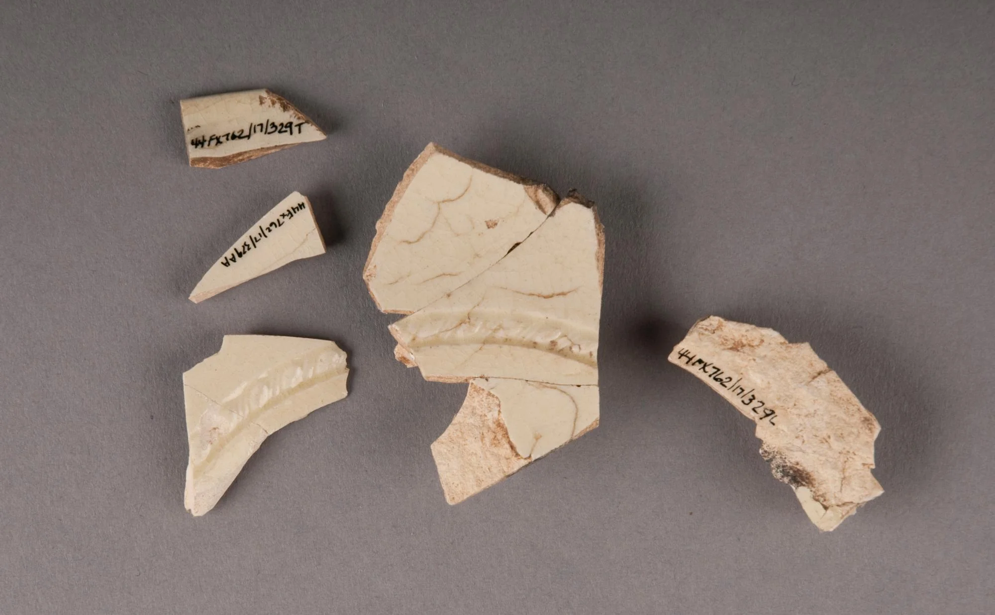 An extensive sheet midden was partially revealed and tested in 1990, with two much larger portions exposed in 1991 and 1992. The midden was at least 30 feet in diameter and in excess of 1.5 feet in depth at its center. Excavations yielded enormous quantities of faunal remains, ceramics, wine bottle glass—including three different bottle seals—table glass, tobacco pipes, and a wide range of personal and household objects. Based on the materials recovered to date, the midden appears to have been deposited just prior to the American Revolution.