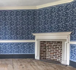 In 2017, the Department of Historic Preservation and Collections carried out an exciting project to research, analyze, document, and restore the room at the top of the stairs to the second floor – known to the Washingtons in the 1790s as the Blue Room.