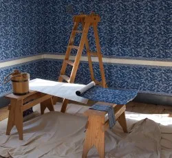 The focal point of the newly-refurnished Blue Room will be a bedstead draped in blue-printed cotton, based on the documentary references to a bed the Washingtons acquired in 1759.