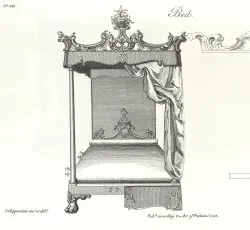 One of the Blue Room bed’s most distinctive features, and the most challenging to interpret, was the cloth-covered “neat cut Cornish” that crowned it all.
