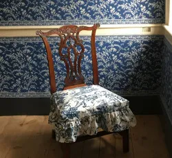 While the original chairs for the Blue Room have not survived, analysis of the Washingtons’ purchasing history suggests the chairs were high-quality, but old-fashioned, English examples that had been moved into the chamber from the first-floor rooms.