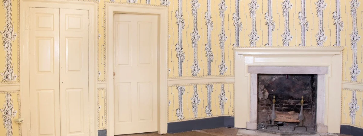 In preparation for the Yellow Room’s restoration, the Architecture team performed thorough research and preliminary physical investigation of the room’s architecture, including the ceiling, floors, windows, framing, and woodwork.