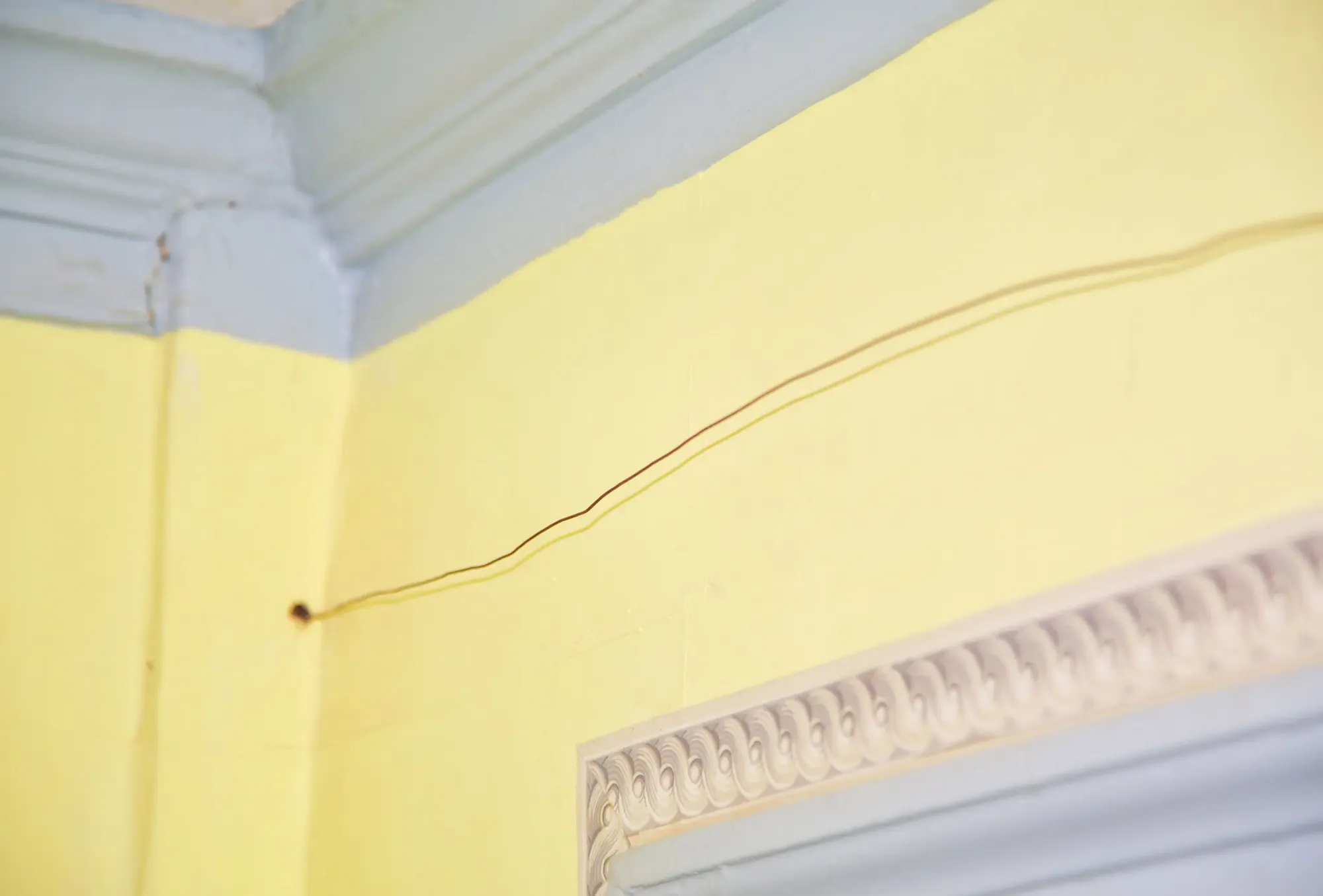 Before the 2021 partial restoration, the bell wire was more clearly visible against the pale yellow walls.