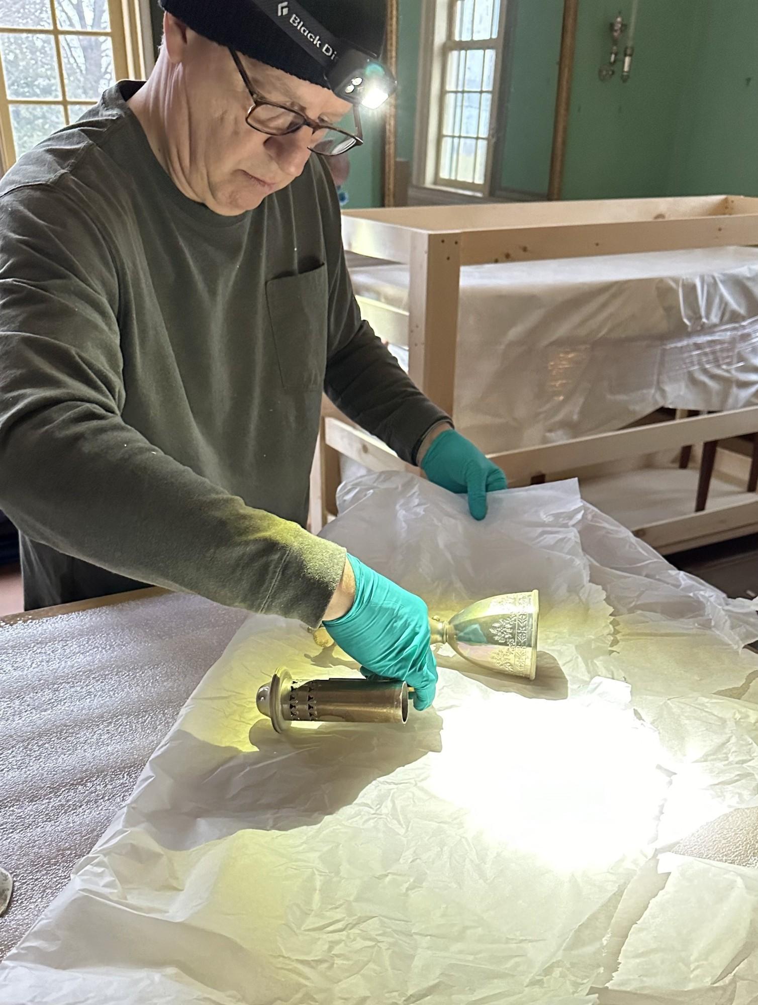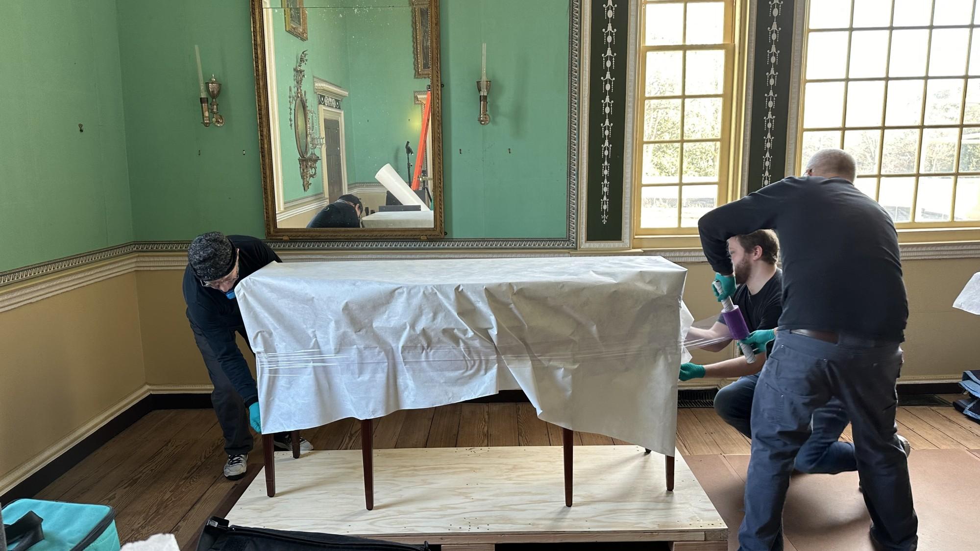 “In Collections, we always work to avoid what are known as the ‘agents of deterioration,’” explains Collections Manager Brady Stroyke. “These are things that pose a risk to objects: fire, water, physical forces, light, incorrect temperature, and incorrect humidity, among others. An undertaking like the Mansion Revitalization Project runs the risk of introducing many of those agents of deterioration. To best protect these objects for the future, it’s better to keep them in a safe, stable environment.”