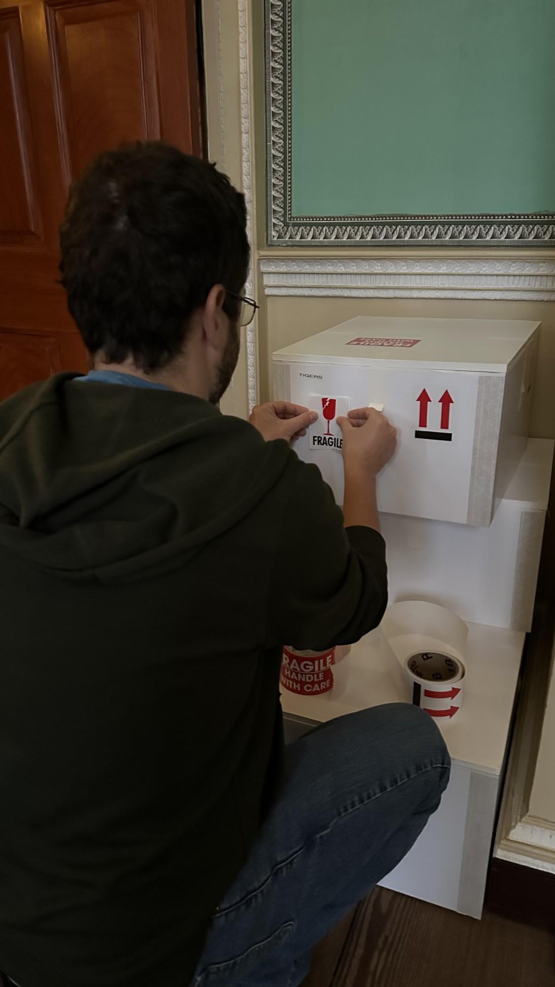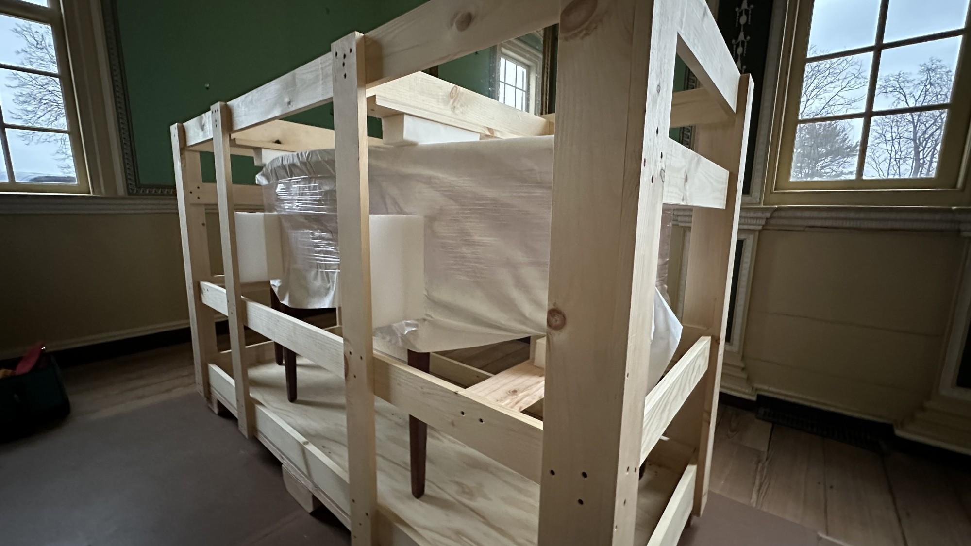 See the custom-built box that will protect the Vaughan Mantelpiece during the Mansion Revitalization Project.