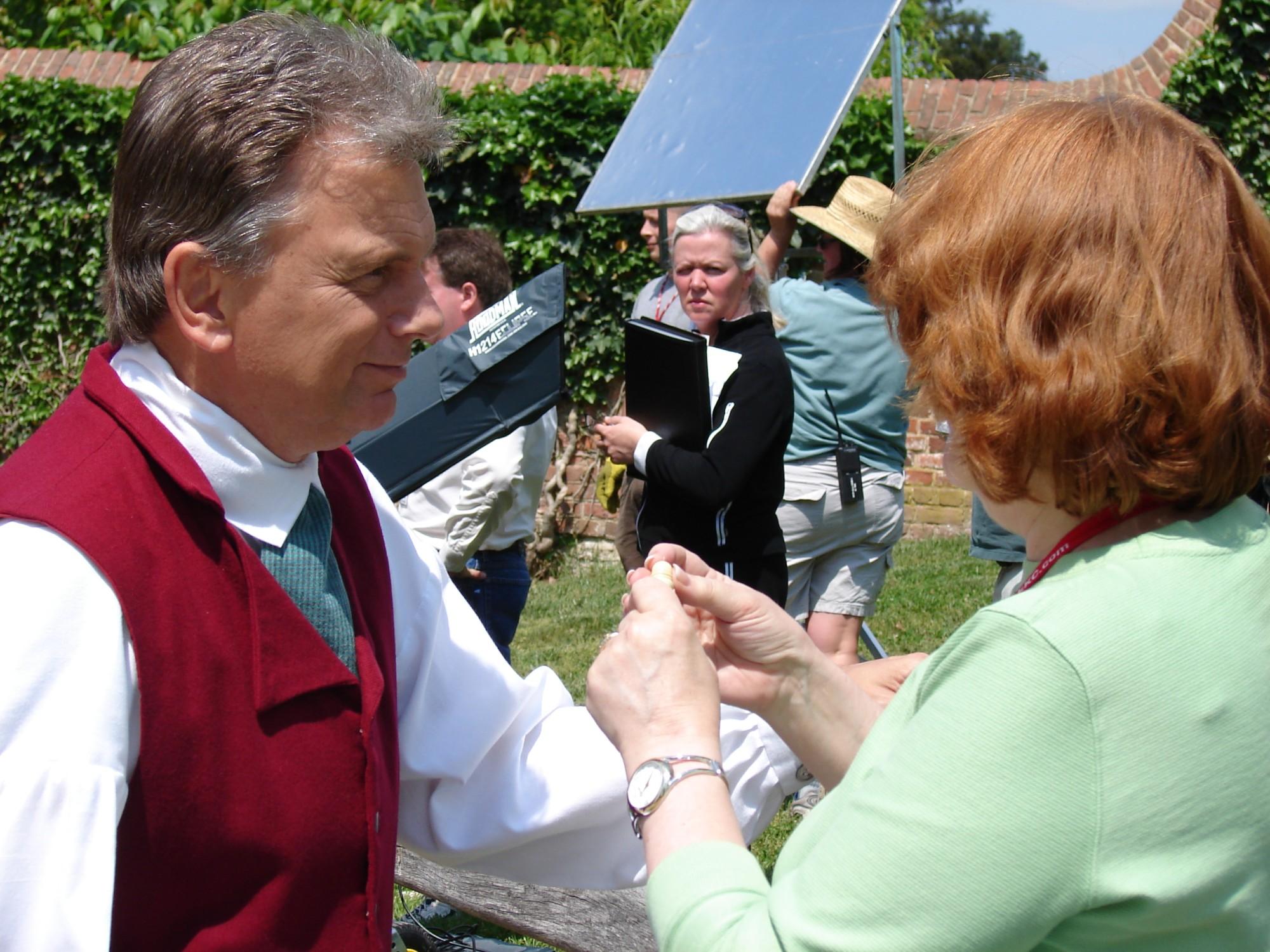 In May 2006, the legendary television personality and host of "Wheel of Fortune" visited Mount Vernon to lend his voice and appearance to a short 3-minute video tour of the estate, to be played for guests at the newly opened Ford Orientation Center.