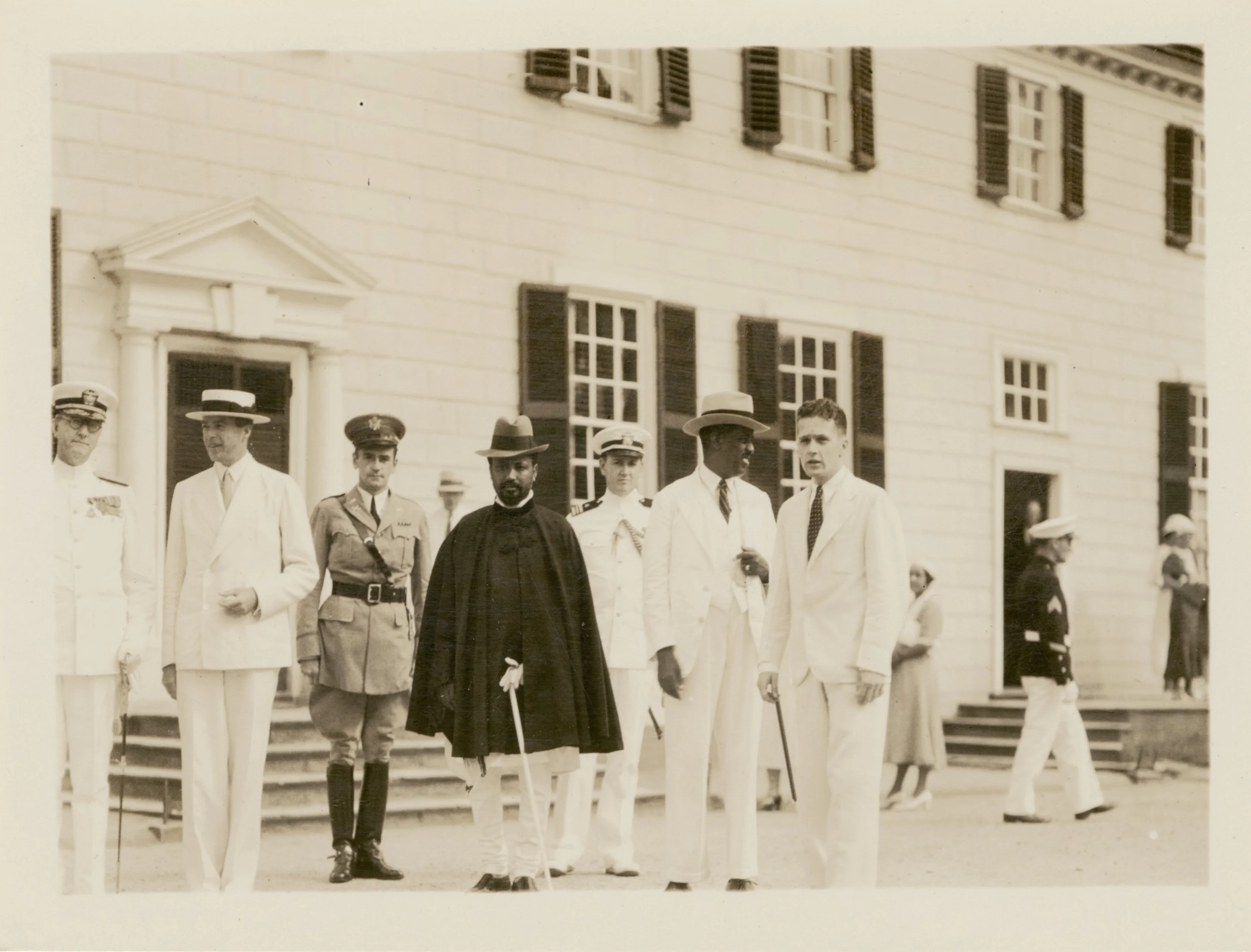 Prince Desta Damtew (Ethiopian noble, army commander, and son-in-law of Emperor Haile Selassie I) visited Mount Vernon on July 20, 1933. Photographs from the prince’s visit show him at the wharf, at Washington’s Tomb, and posing outside the Mansion’s east front.