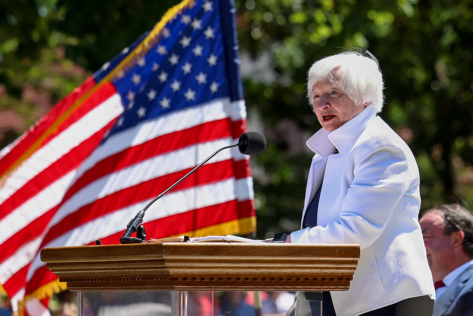 On July 4, 2022, U.S. Treasury Secretary Janet Yellen delivered congratulatory remarks during a naturalization ceremony on the Bowling Green at Mount Vernon. The ceremony, which featured 52 new citizens from 42 countries, including members of the U.S. military, was watched by a large Independence Day crowd.