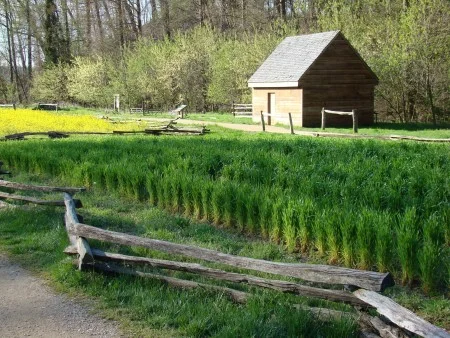 The 16-Sided treading barn is George Washington’s very own invention, and is used for processing wheat.