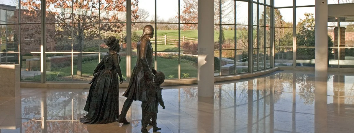 Visitors are welcomed to Mount Vernon by friendly bronze statues of George Washington and his family in the Ford Orientation Center.