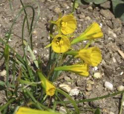 The Hoop Petticoat is one of the smallest daffodils grown at Mount Vernon and is often crowded towards the front of the border for ease of viewing. It has unique flowers with large bells and slender, petite petals.