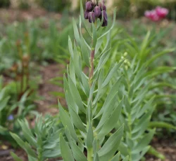 This tall spring bulb is crowned by a spike of maroon flowers above gray-green foliage and makes a striking addition to the spring garden. The bulb itself is strongly odoriferous which prevents the depredations of rodents.