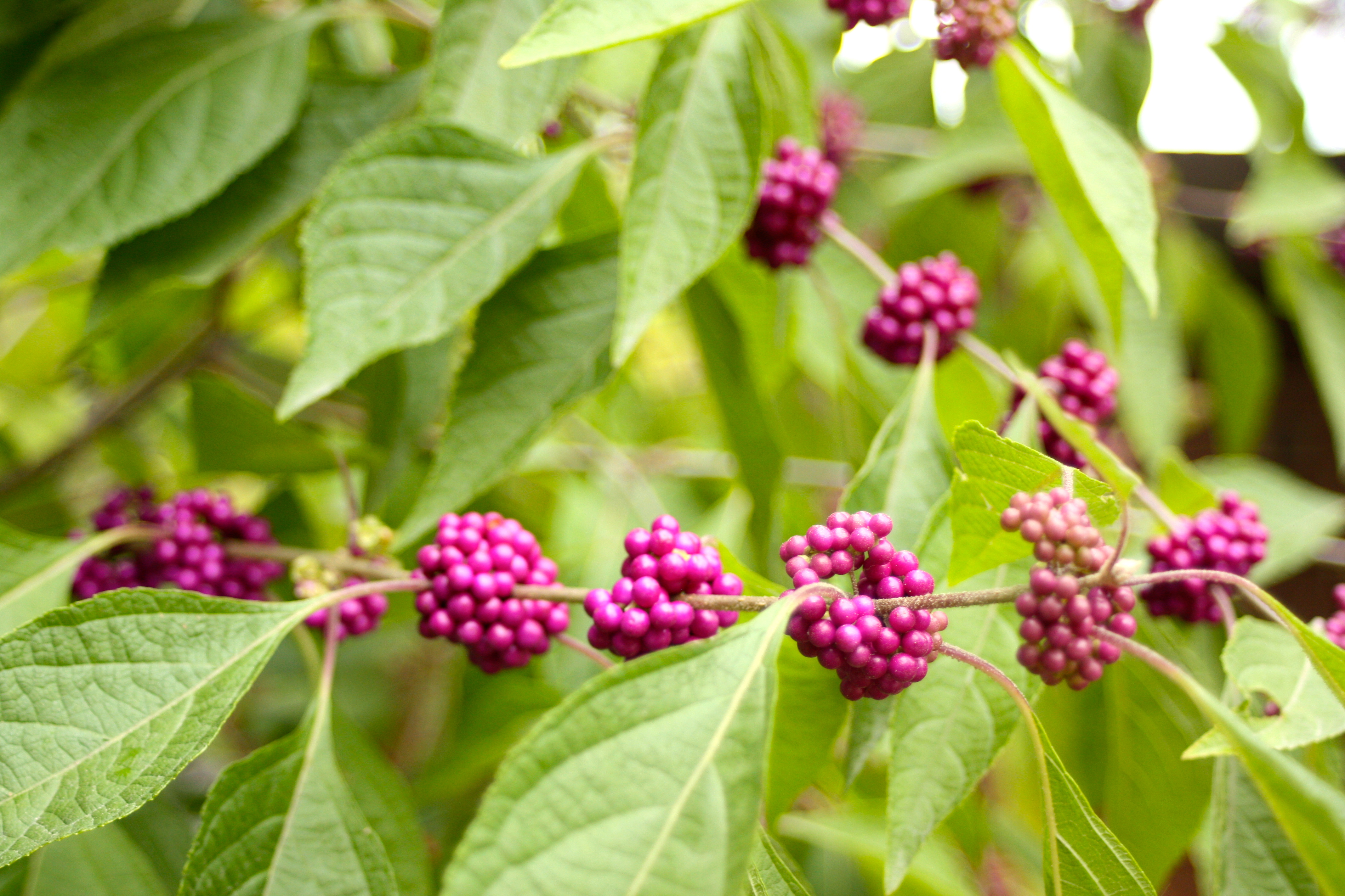 All parts of this bold shrub are fragrant. It particularly deserves its name for the profusion of amethyst purple berries borne on its long branches.